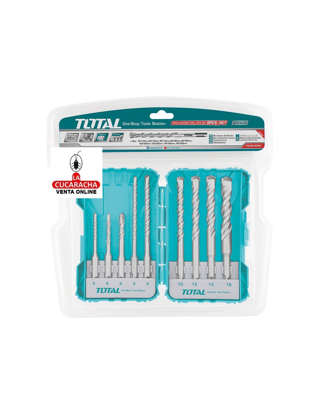 accesorios herramientas. Juego 9 brocas pared SDS Plus Mod. TACSDL30901