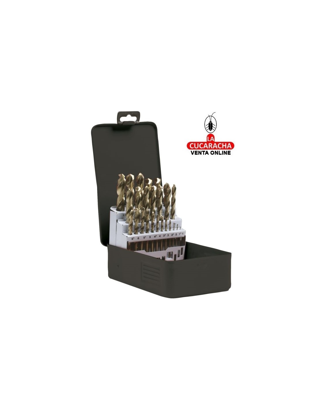 ESTUCHE METALICO 25 BROCAS METAL HSSCO SERIE CORTA DIN 338 ACERO RAPIDO MODELO 20202.