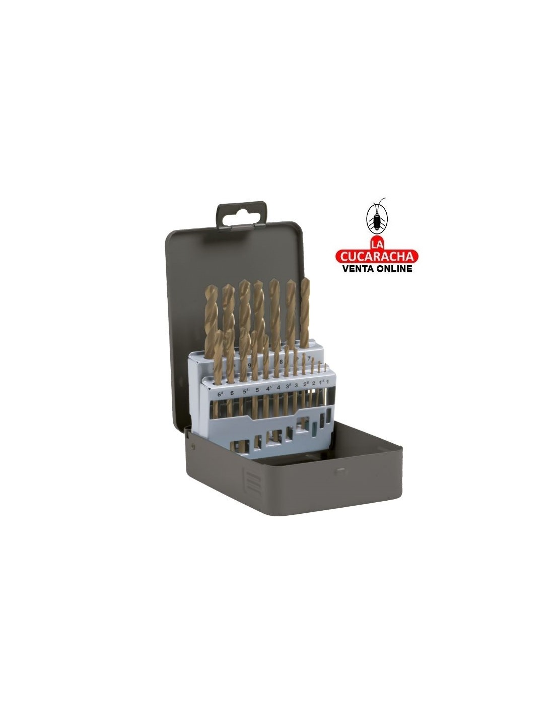ESTUCHE METALICO 19 BROCAS METAL HSSCO SERIE CORTA DIN 338 ACERO RAPIDO AL COBALTO MODELO 20203.