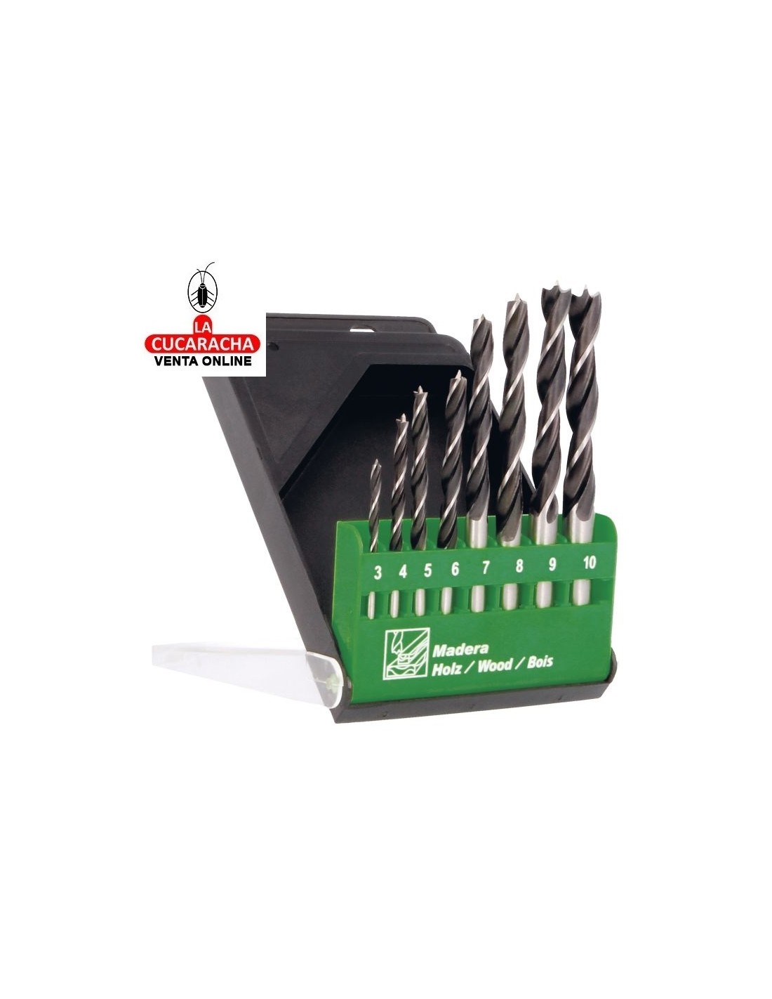 ESTUCHE 8 BROCAS MADERA TRES PUNTAS CROMO VANADIO SERIE CORTA PUNTA CENTRADO MODELO 22606.