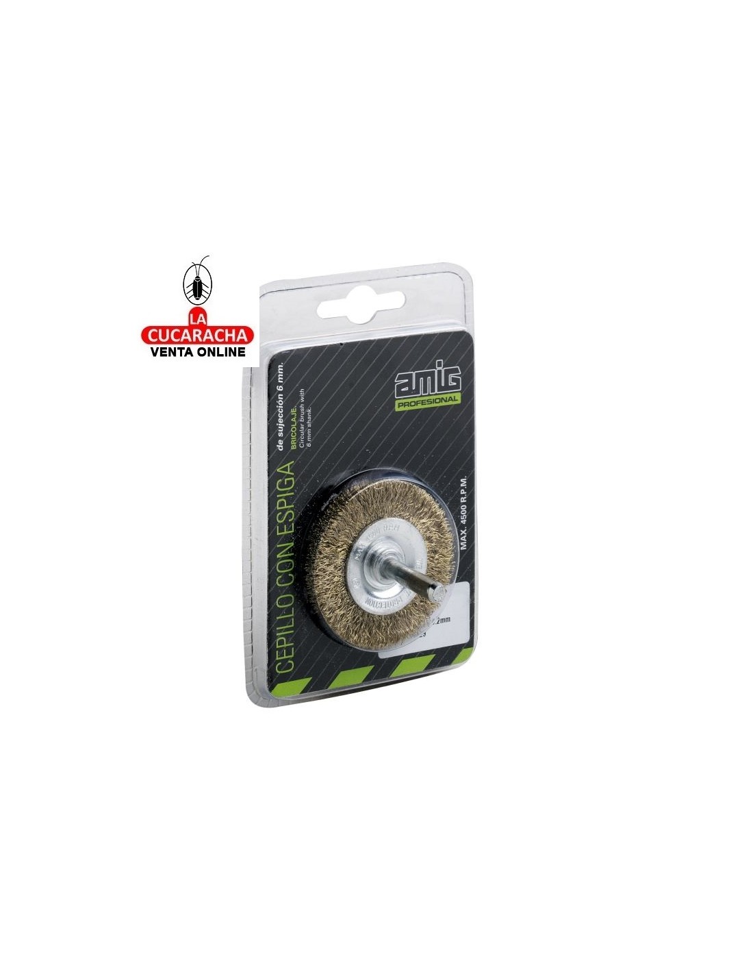 Cepillo circular de acero con espiga de sujeción de 6 mm.