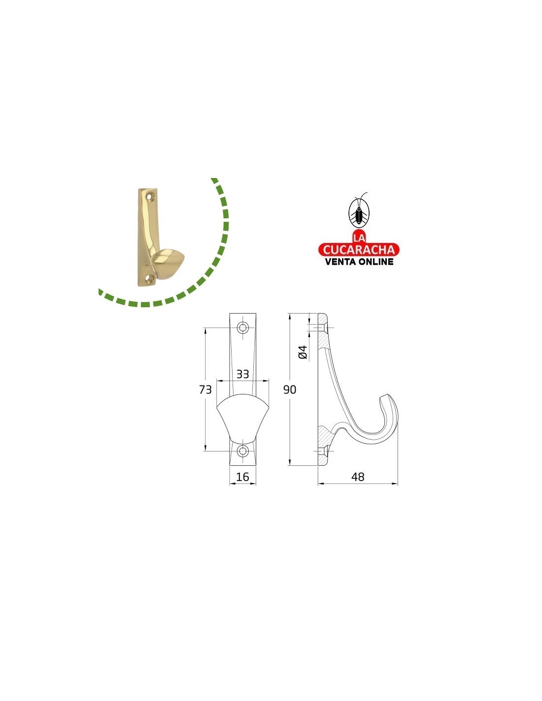 COLGADOR PARA LA ROPA DE LATÓN: Ofrece la máxima seguridad en la colocación de cargas verticales. Apto para anclarlo en paredes, puertas y sobre superficies como madera, metal, y otros materiales planos y duros. DETALLES: Medidas: 92 x 16 x 48 mm. De latón de alta resistencia. El latón es un material que destaca por su dureza, solidez, resistencia a la tracción y a la corrosión, y de larga vida útil. USOS: Gancho perfecto para colgar abrigos, sombreros, bufandas, fulares, bolsos, paraguas o pequeñas mochilas. De diseño clásico y polivalente, es muy utilizado en entradas, recibidores, o habitaciones de hogar, de escuelas, de tiendas u oficinas. ELEGANTE: Perchero elegante perfecto para entornos que requieren un toque clásico, retro y a la vez actual. Perfecto para cualquier estancia del hogar o locales con un aire personal.