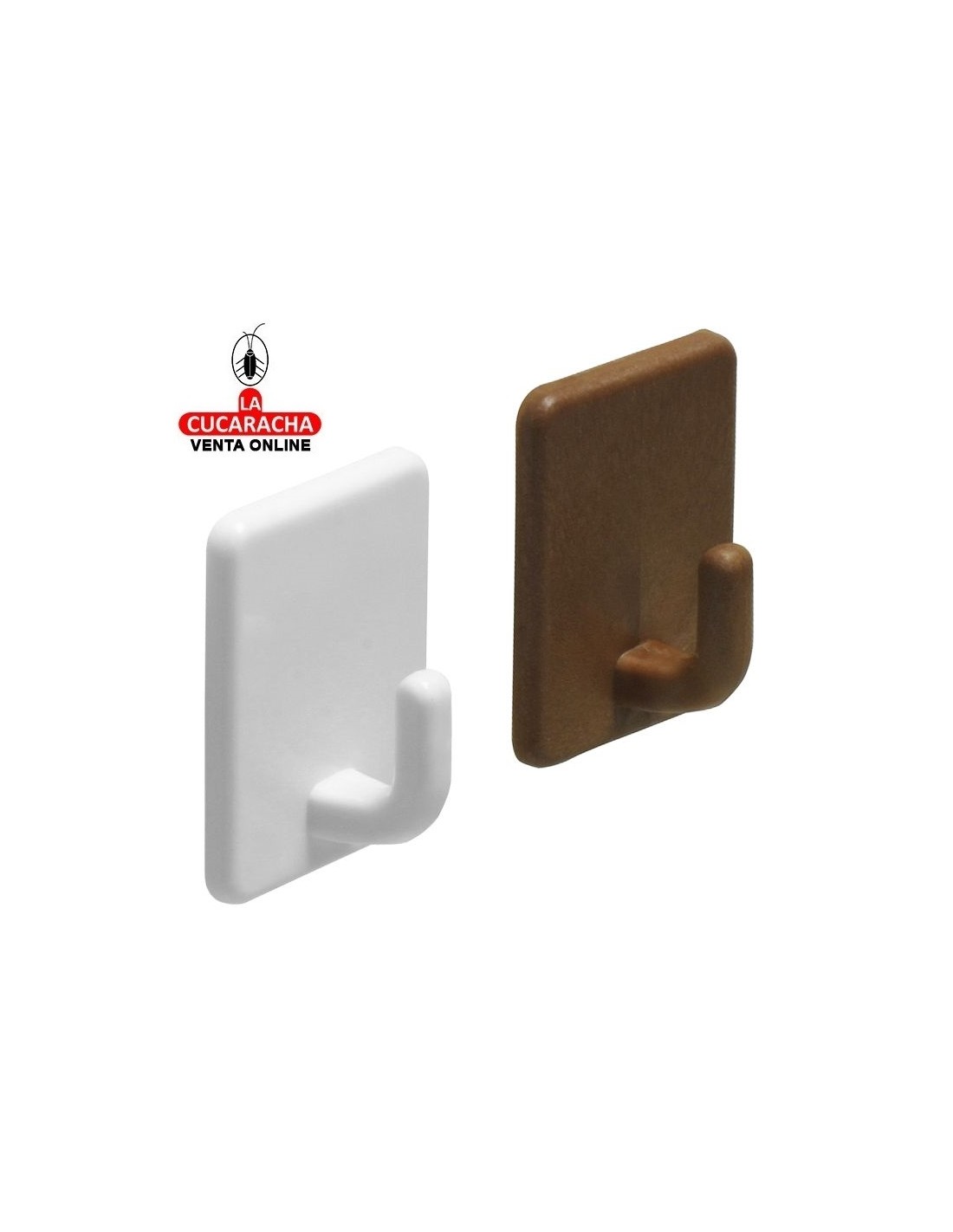 Colgador multiusos de plástico adhesivo. Evita dañar la pared. Recomendado para fijar en superficies lisas. Colgar objetos de poco peso.