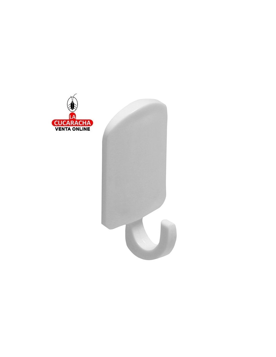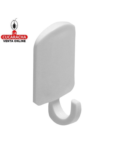Colgador multiusos de plástico adhesivo. Evita dañar la pared. Recomendado para fijar en superficies lisas. Colgar objetos de poco peso.