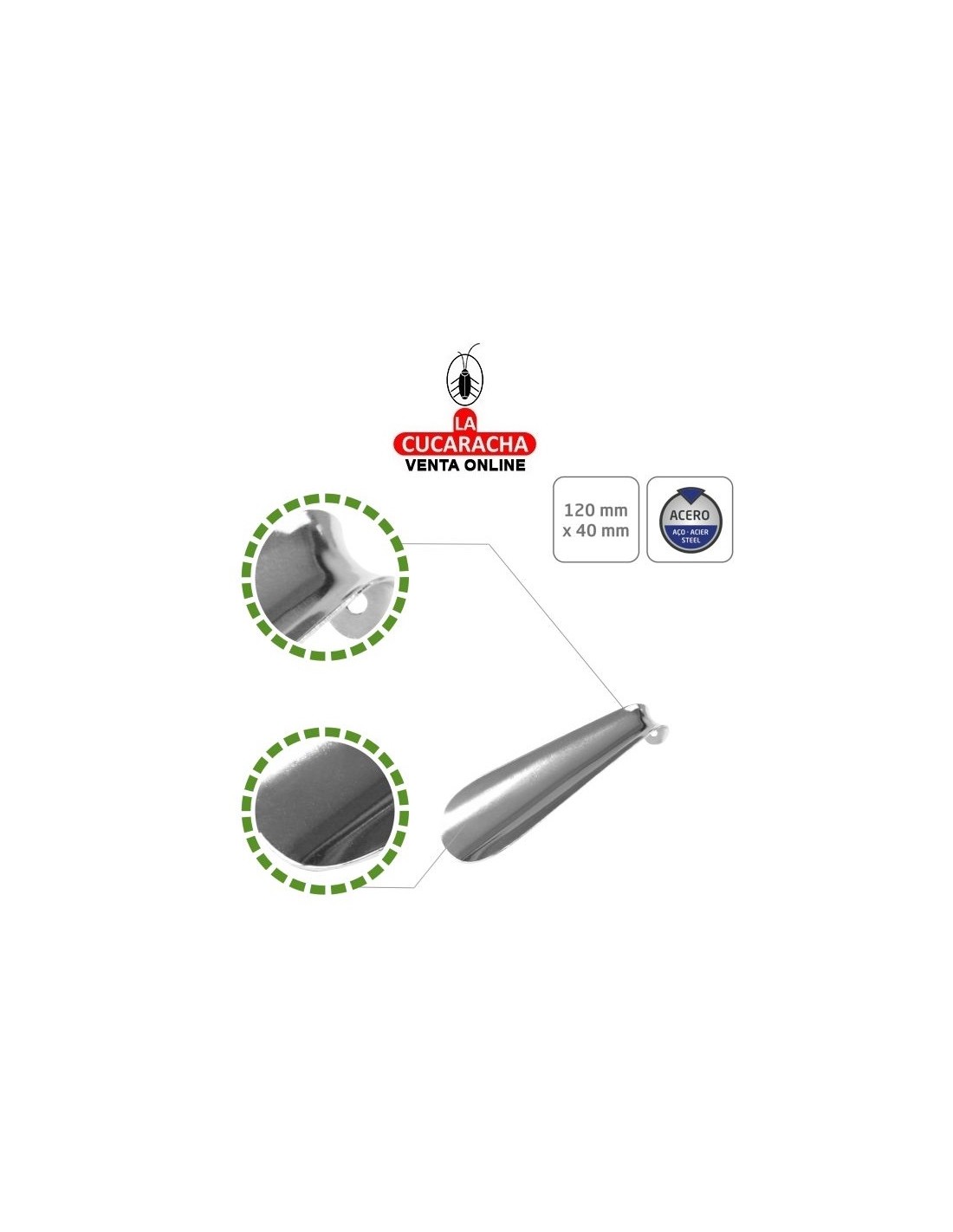 CALZADOR METÁLICO: fabricado en acero que permite la entrada de los pies en los zapatos de vestir, zapatillas o botines. Tus pies se deslizarán sobre el calzador y entrarán cómodamente, evitando la deformación y el desgaste en la parte trasera de los zapatos. DETALLES: Medidas: 120 x 40 x 18 mm. El Acero es un material que destaca por su dureza, alta resistencia a la tracción y larga vida útil. USOS: Te permite introducir el pie sin esfuerzo evitando pisar, doblar, marcar o forzar innecesariamente el contrafuerte (material rígido de la parte trasera del calzado). DISEÑO: Calzador de acero inoxidable tiene un diseño de orificio de gancho, que se puede colgar fácilmente en cualquier lugar con un gancho para facilitar el acceso y el almacenamiento, ahorrando espacio