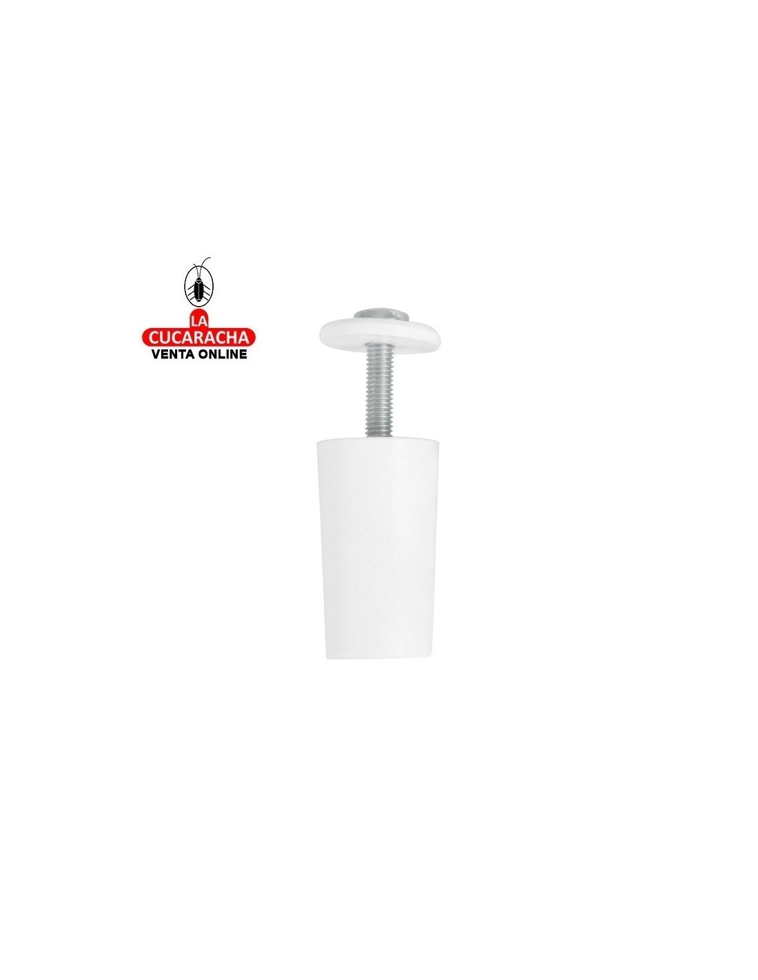 DESCRIPCIÓN: Tope de plástico de forma cónica para persianas con tornillo M5 invisible antióxido y arandela exterior. Evita que la persiana se cuele dentro del cajón. Colocación fácil y rápida sin necesidad de utilizar herramientas especiales. DETALLES: Longitud: 40-60 mm. Material: Polipropileno (PVC). Resistente a la intemperie y de gran durabilidad. Podrá encontrar toda la gama de accesorios de persiana disponible en La Cucaracha. FÁCIL DE INSTALAR: Se coloca en la parte final de la persiana utilizando dos unidades a ambos lados y sujetándolos mediante el tornillo central. Quedarán orientados hacia la cara exterior de la persiana. Harán de límite para evitar que se salga de las guías al enrrollarla o subirla. VERSATILIDAD: Estos topes de persianas son válidos para cualquier persiana. Ya sean de PVC o de aluminio, tengan o no aislamiento interno. Simplemente hay que tener en cuenta que el grosor sea inferior a los 1,6 cm (el 99% lo son).