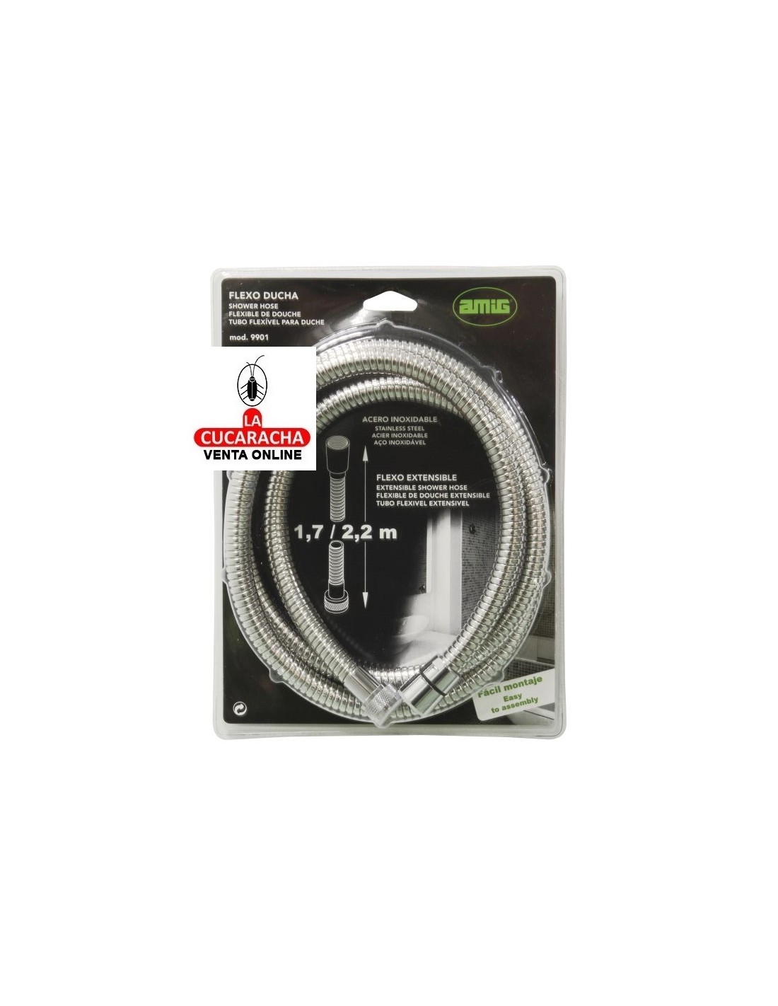 BLISTER FLEXO DUCHA ACERO INOX EXTENSIBLE 1.7M MODELO 9901.