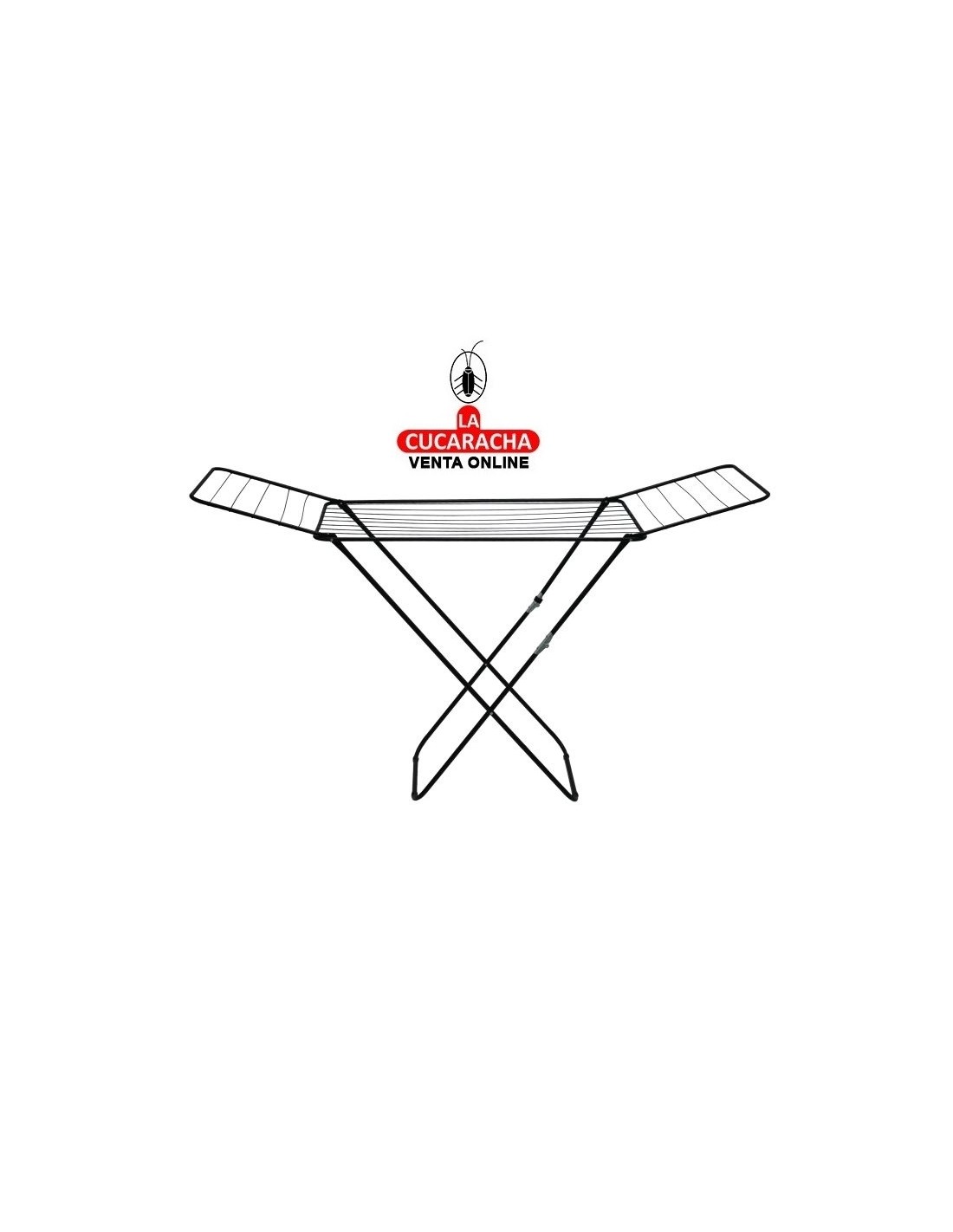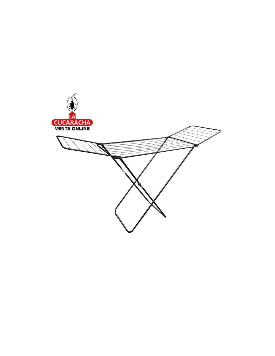 Tendedero plegable con alas. Acabado negro. Fabricado en acero. 18 metros de espacio para tender la ropa.