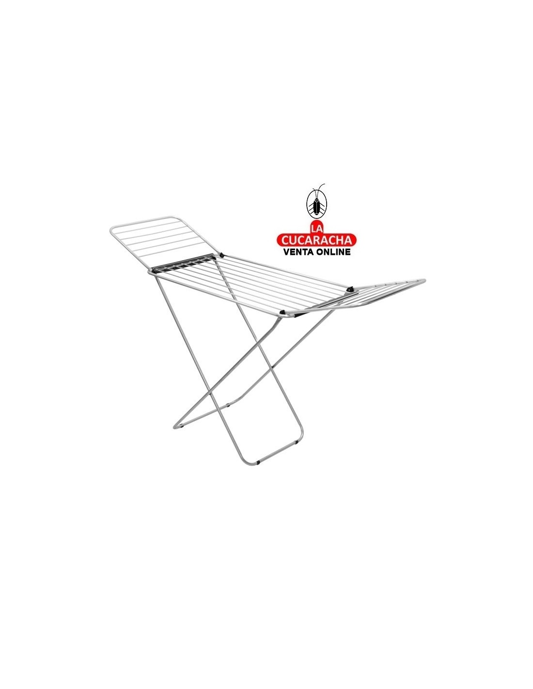 Tendedero plegable con alas. Alas y varillas fabricadas en aluminio. Patas fabricadas en acero. 18 metros de espacio para tender la ropa.