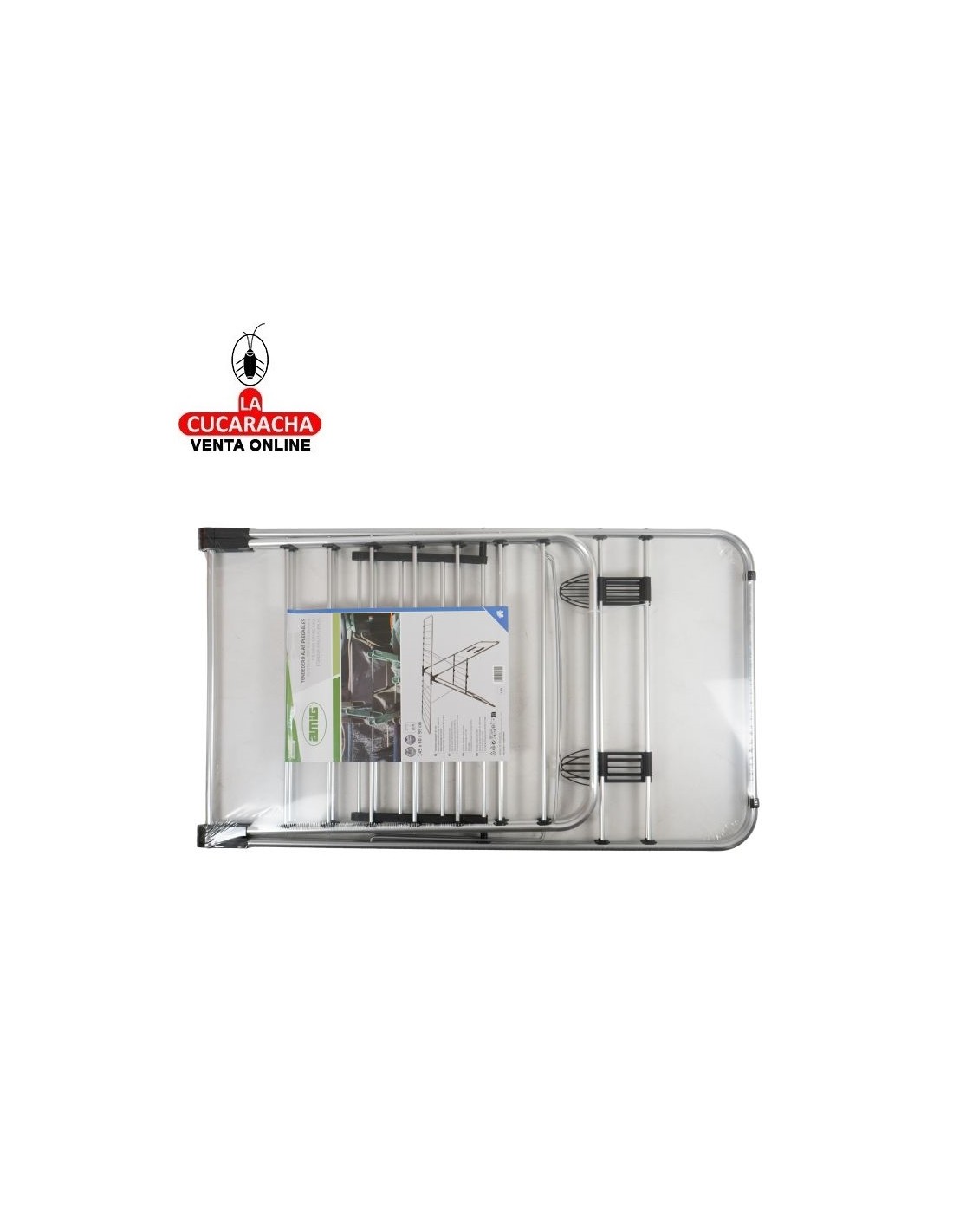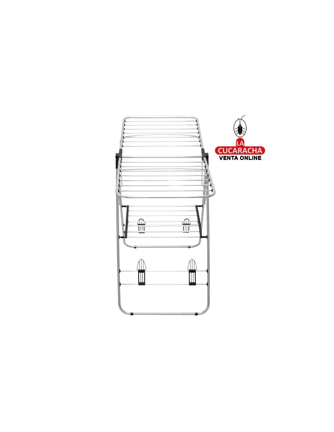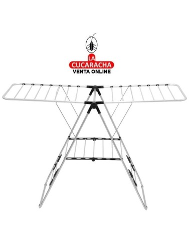 Tendedero plegable con alas. Alas y varillas fabricandas en aluminio. Patas fabricadas en acero. 15 metros de espacio para tender la ropa.