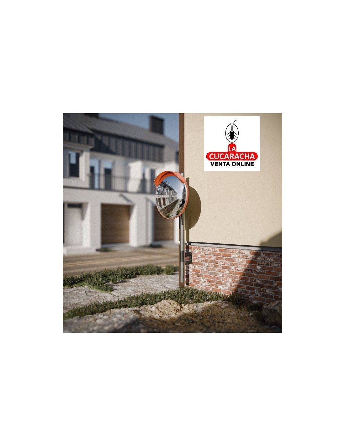 SOPORTE ACERO PARED ESPEJO CONVEXO SEGURIDAD GARAJES CON VISERA MODELO AMIG 2.