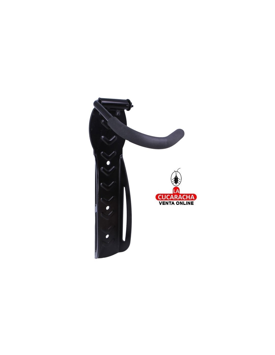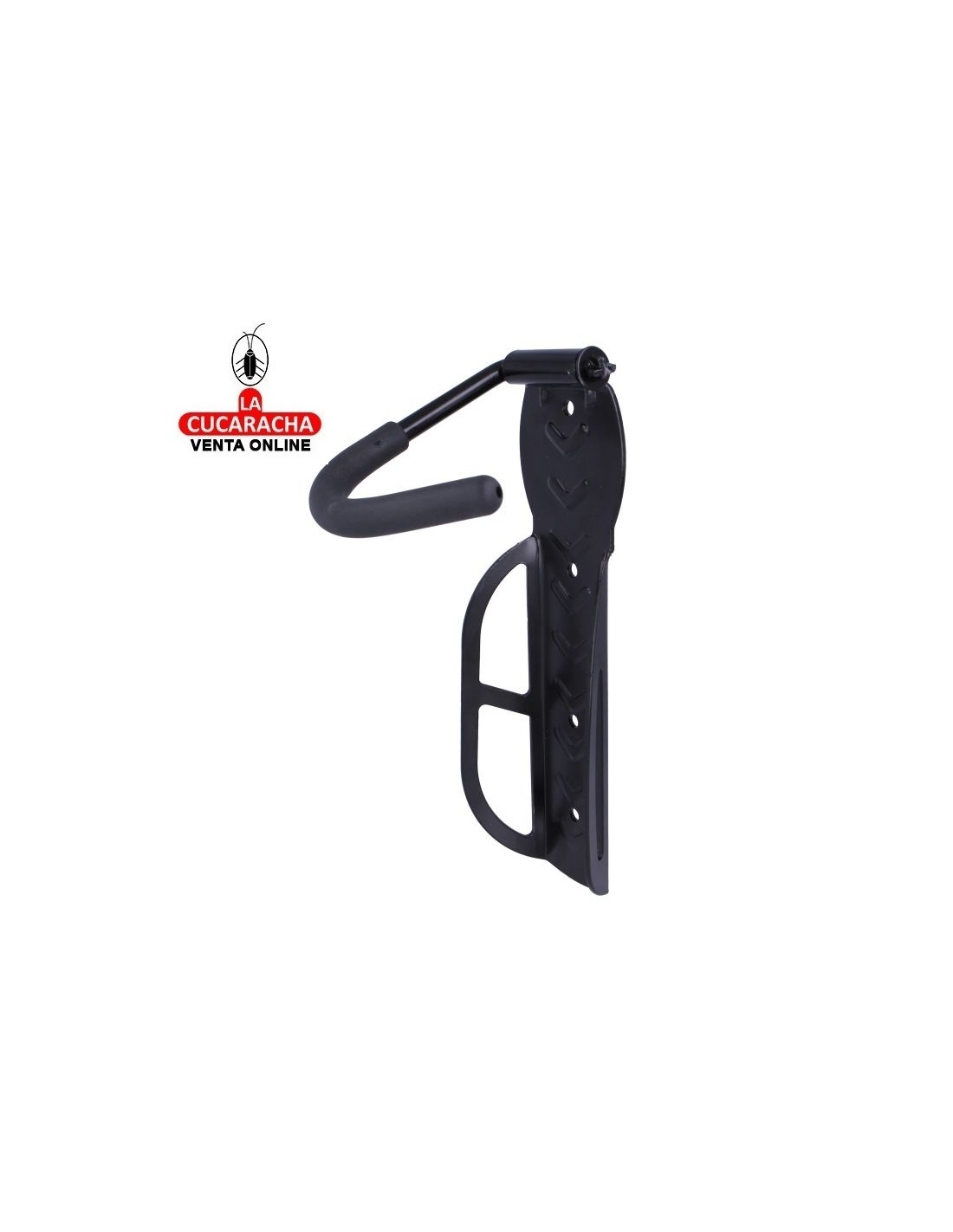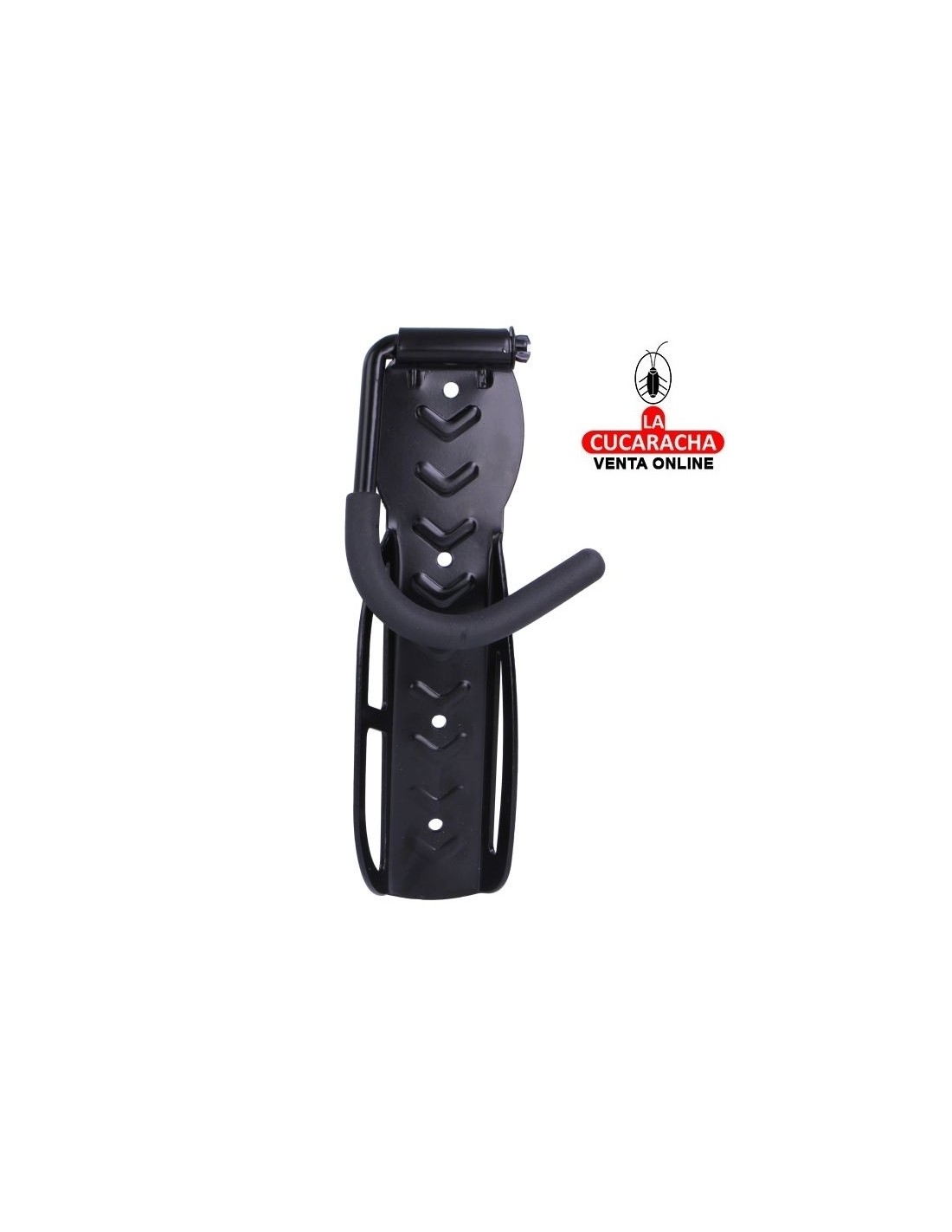 Colgador de pared para bicicleta en negro epoxi con sistema de pletina para poder amarrarlo con un candado de bicicleta.