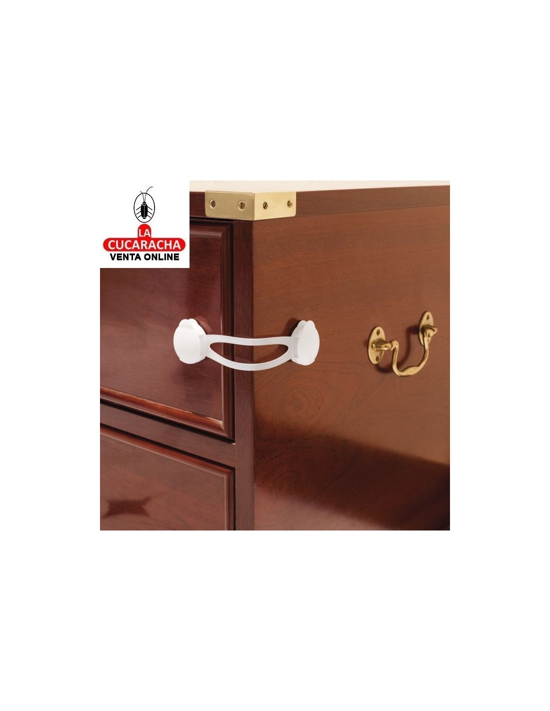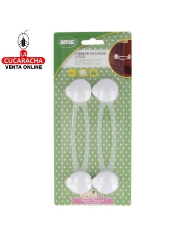 Cierre de seguridad multiusos largo que impide la apertura de puertas de armario, frigoríficos e inodoros.