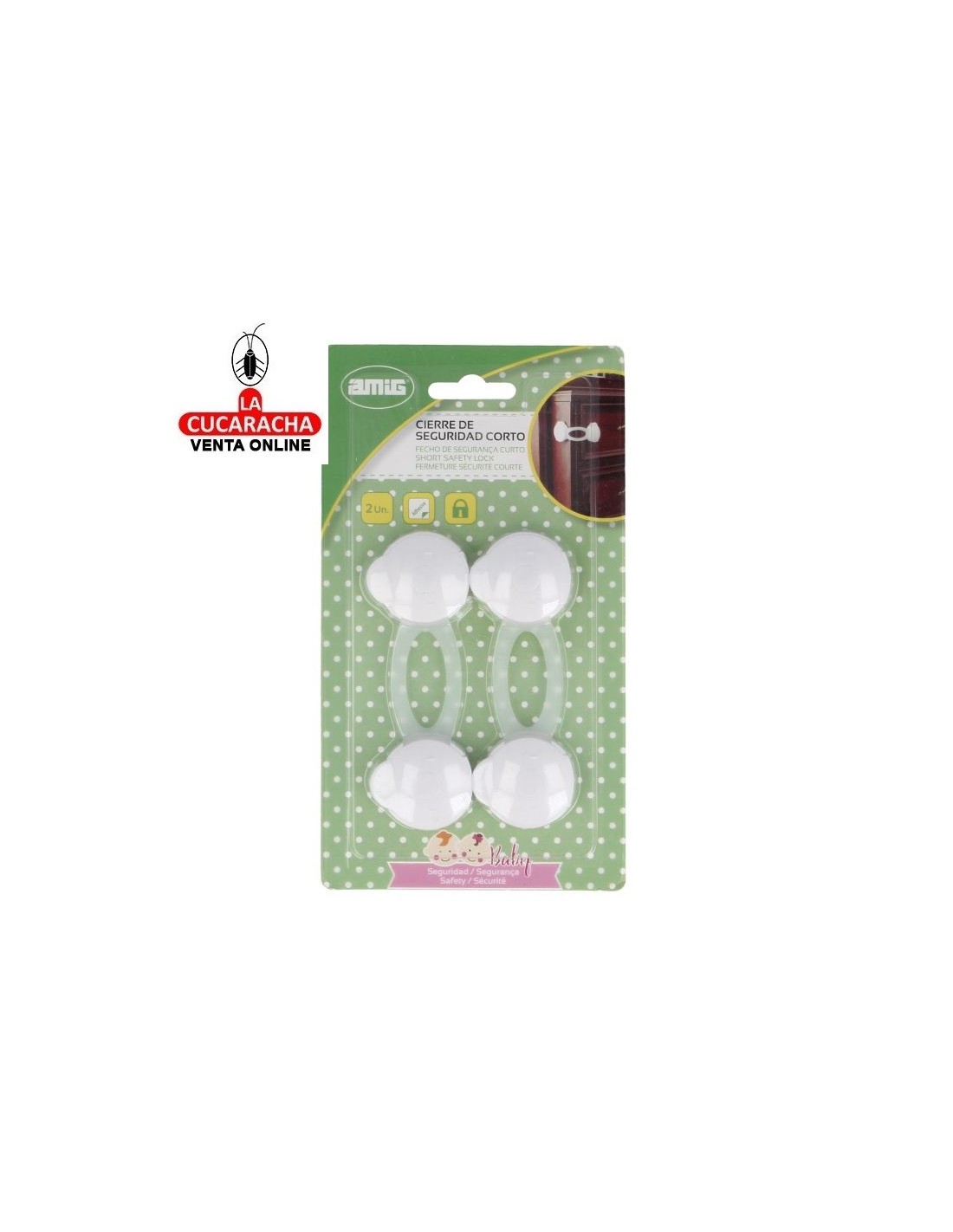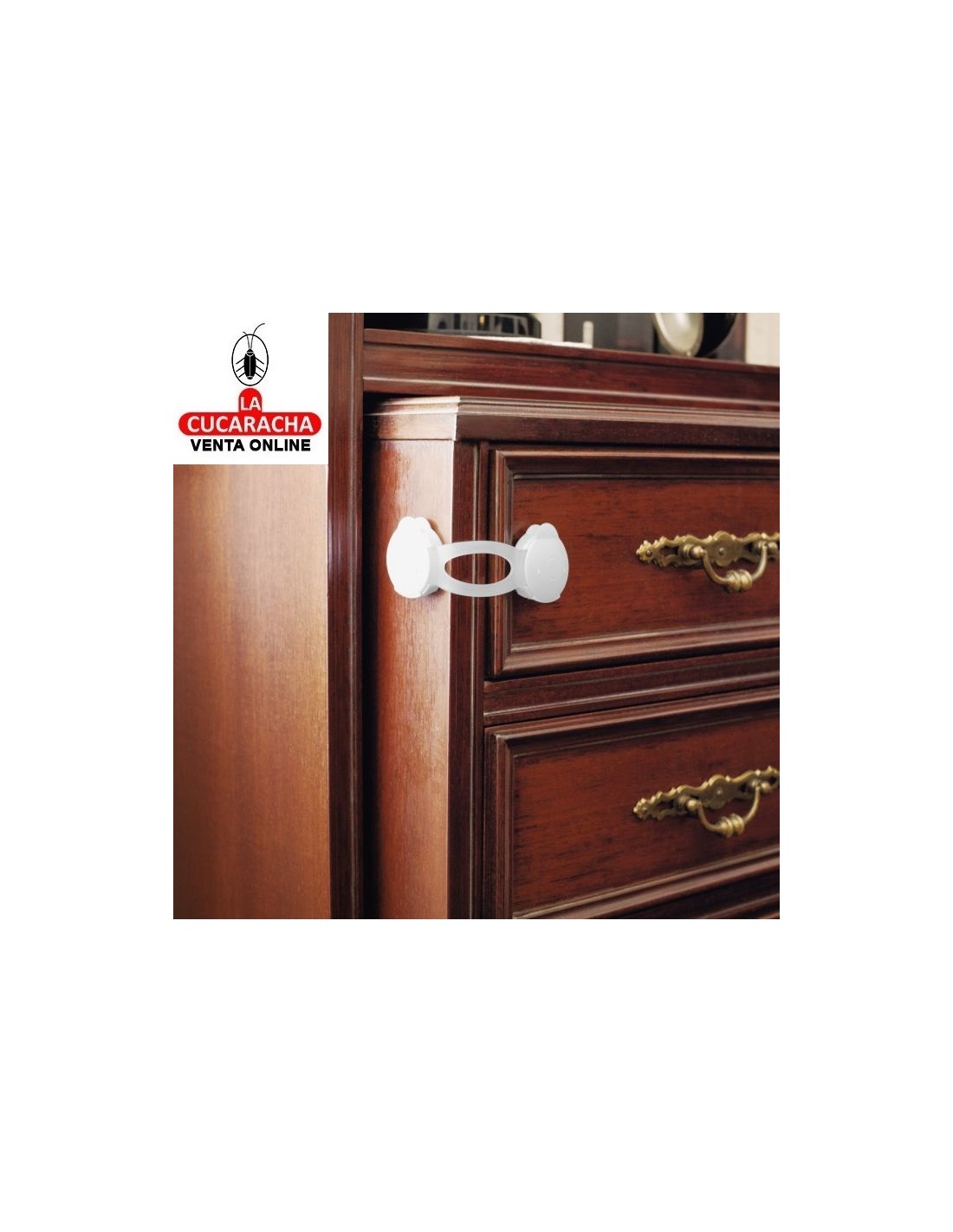 Cierre de seguridad multiusos corto que impide la apertura de puertas de armario, frigoríficos e inodoros.
