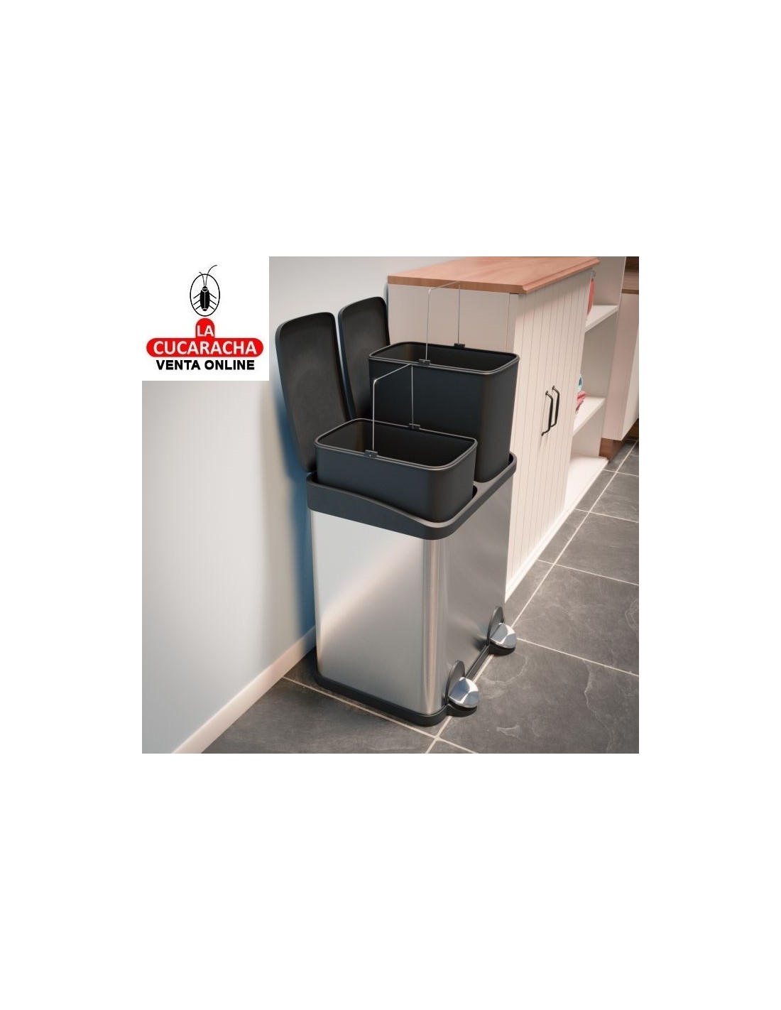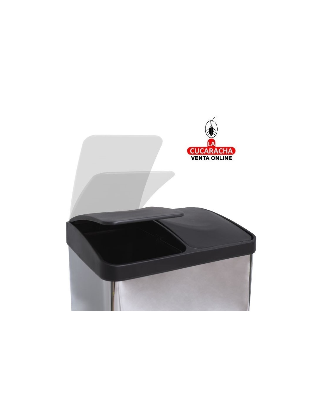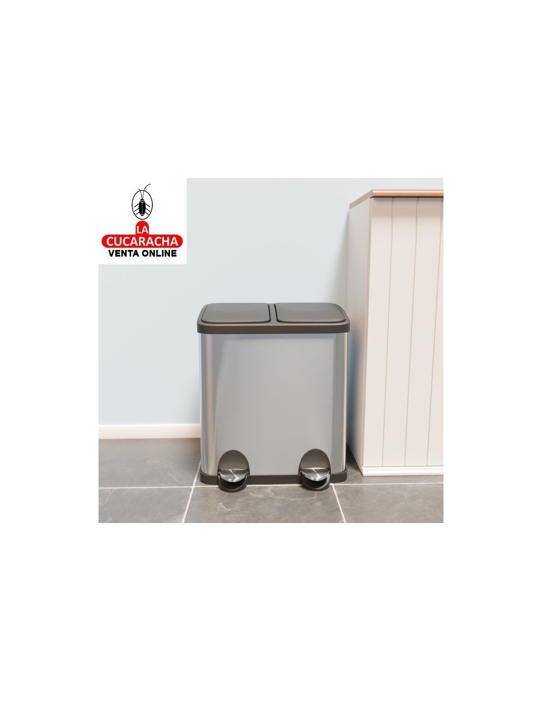 CUBO DE BASURA DE RECICLAJE: Esta papelera de reciclaje doble es una solución innovadora para clasificar y reciclar los residuos con estilo. Con sus pedales de apertura y tapas herméticas, tendrás una experiencia de reciclaje cómoda y sin malos olores USOS: Gracias a sus pedales de apertura independiente, es muy fácil introducir los residuos y reciclarlos por separado. Además, es perfecto tanto para interiores como exteriores y es apto para colocarse en cocinas, oficinas, terrazas o jardines DETALLES: Sus medidas son: 48 x 32 x 40 cm. Ha sido elaborado con acero inoxidable, que destaca por su dureza, resistencia a la tracción y larga vida útil. Cuenta con acabado plateado. Cada cubo posee una capacidad de 15 l. Incluye una base de plástico DISEÑO MODERNO: El acabado plateado en acero inoxidable le da un toque elegante, perfecto para cocinas modernas y clásicas. Tiene un diseño compacto y sencillo