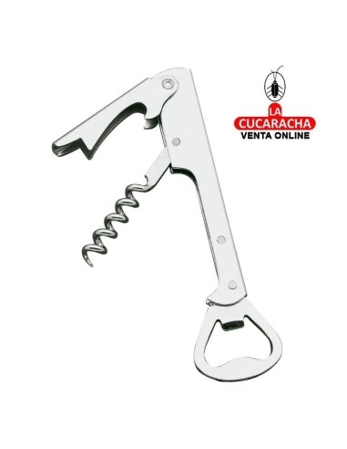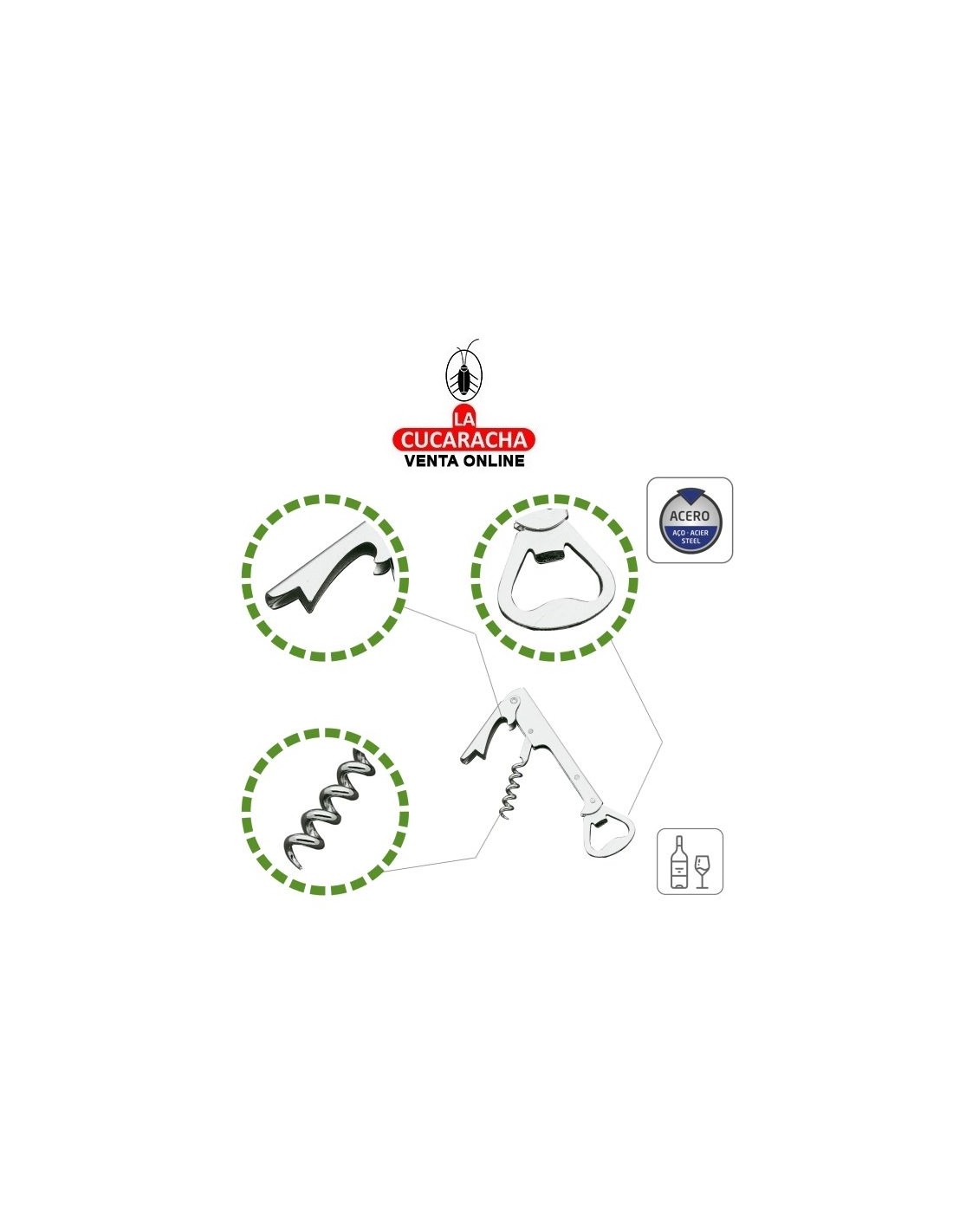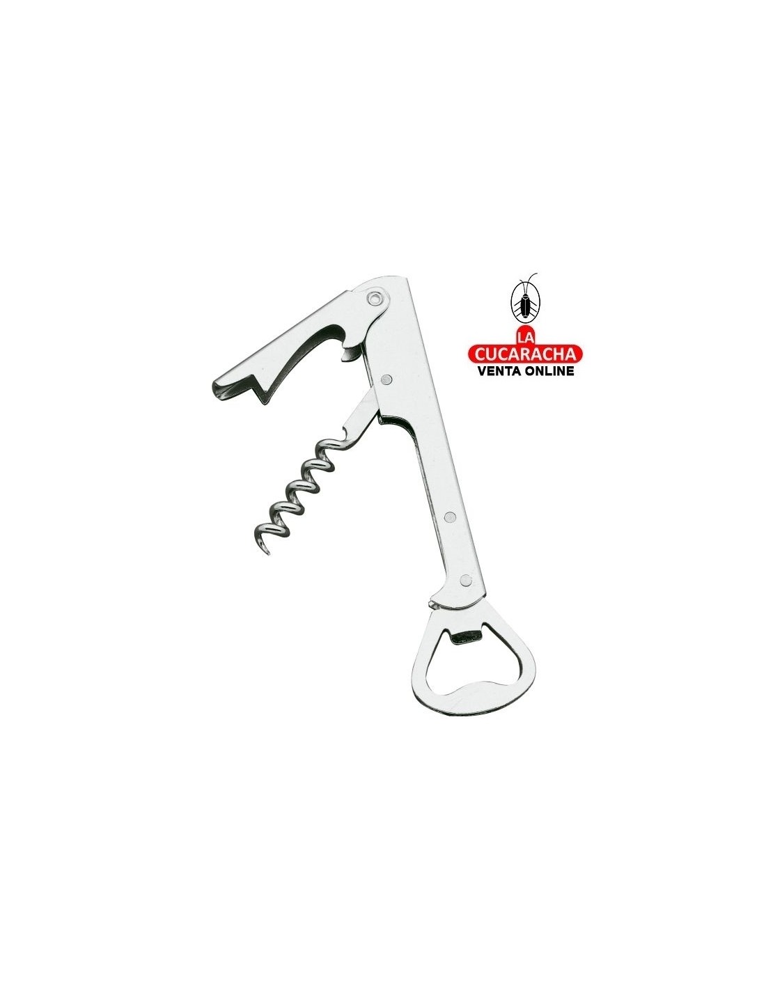 Sacacorchos en acero con tirabuzón de alambre y abretapón.