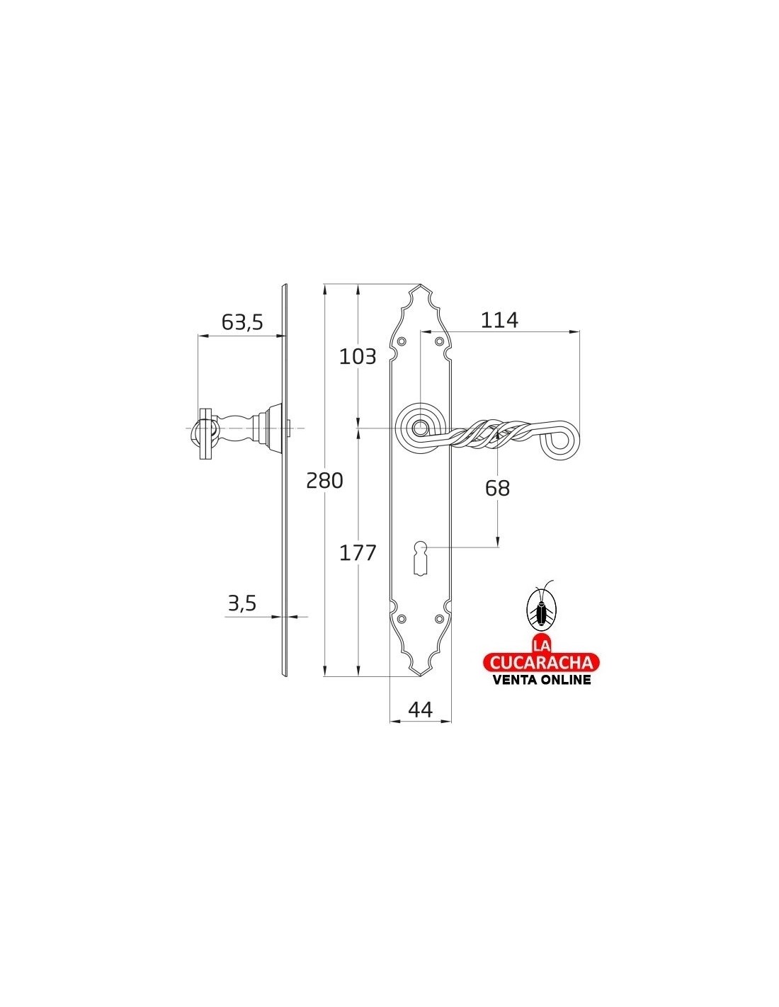 Material: Placa de acero, tirador de zamak