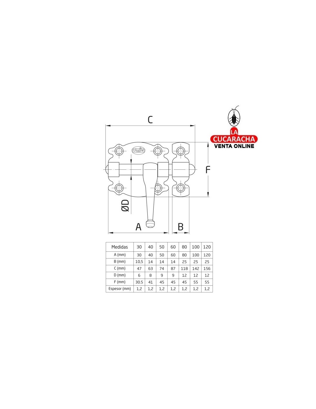 Pasador de sobreponer en acero para puertas de paso y mueble. Incluye tornillería.