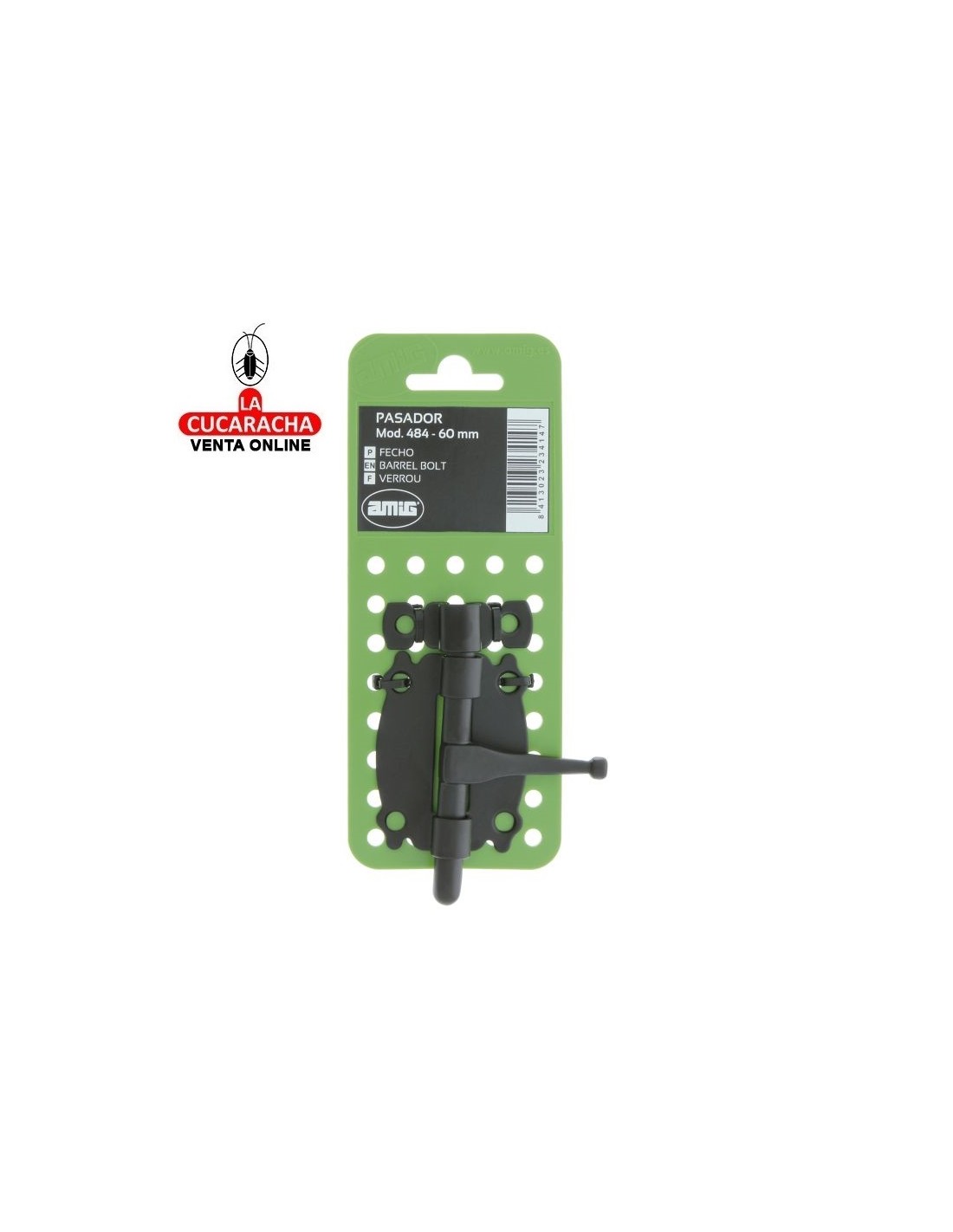 BLISTER PASADOR RUSTICO ACERO NEGRO EJE ZAMAK DE SOBREPONER MODELO 484.