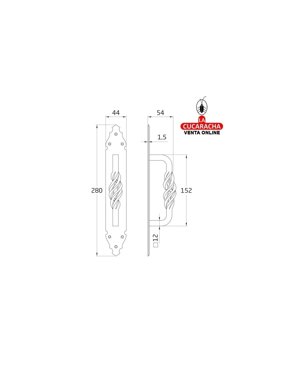MANILLON RUSTICO ZAMAK PLACA MARTILLEADA ACERO PUERTAS PASO MODELO 104.