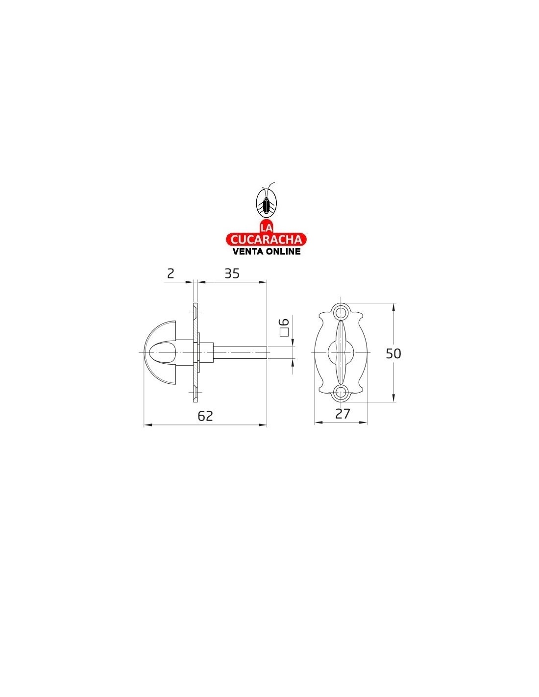 Muletilla de zamak con placa. Cuadradillo de 6 mm para condenas en puertas de paso.