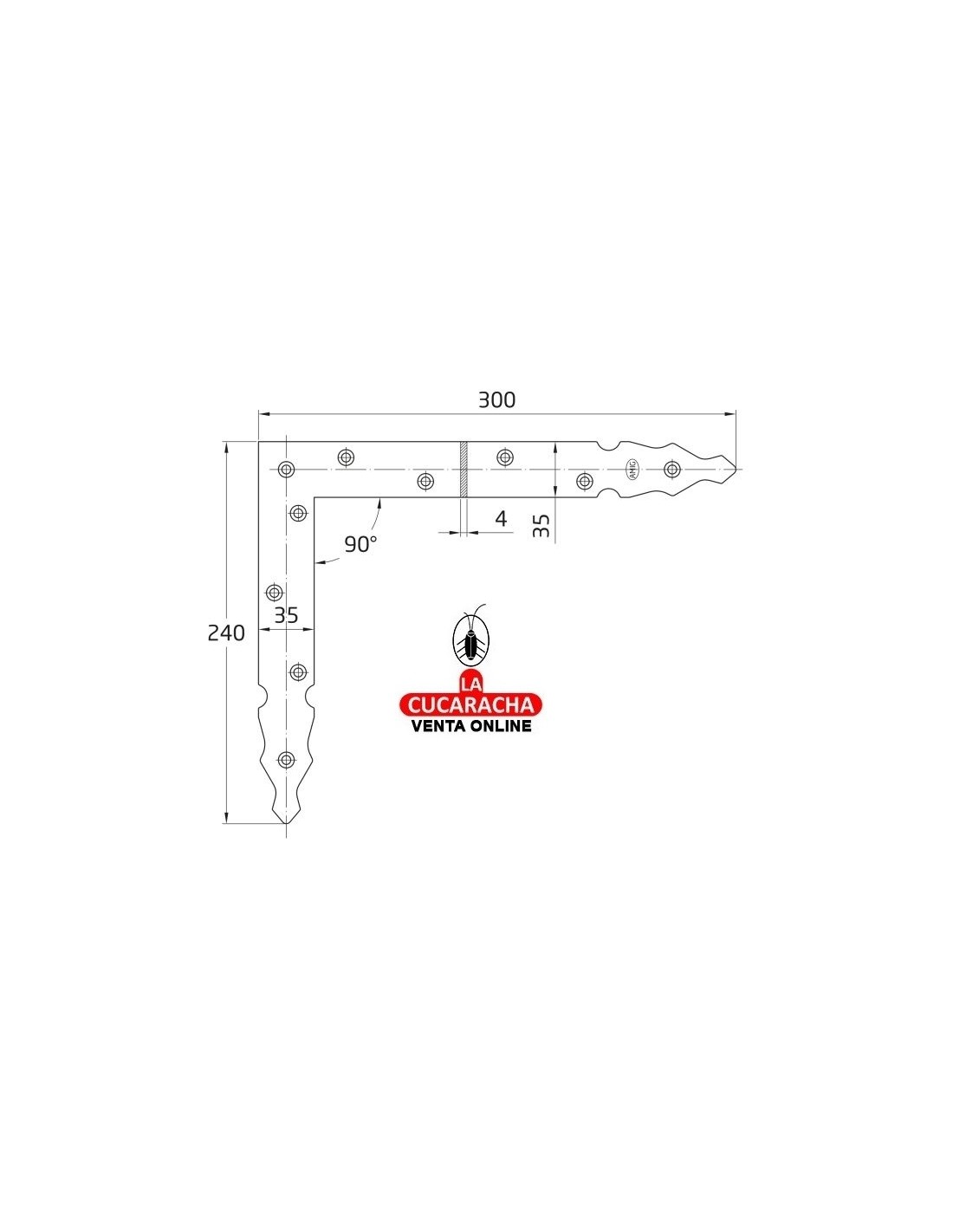 ESCUADRA GOTICA ACERO REFUERZO PUERTAS Y VENTANAS 300X240MM MODELO 8510.