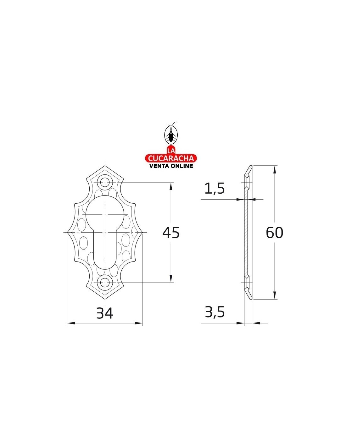 BOCALLAVE VERTICAL Y MARTILLEADA: Embellecedor de acero para cerraduras de muebles, ideal para un estilo rústico de decoración. Compatible con cilindro de europerfil. Se recomienda limpiar suavemente con un paño húmedo. USOS: Ideal para colocar en cerraduras de puertas de muebles y/o baúles. Perfecta para embellecer los cerrojos de cajones, cajoneras, baúles y muebles con llave de europerfil. Su materiales resistentes garantizan una durabilidad a largo plazo. DETALLES: Sus medidas son: 60 x 34 x 3,5 mm. Ha sido elaborado con acero, un material que destaca por su alta resistencia a la corrosión, el desgaste y el roce. No incluye tornillería. Cuenta con acabado en color negro. FÁCIL DE INSTALAR: Con la tornillería adecuada, esta bocallave sencilla de instalar en puertas de armarios, muebles o baúles. Con la ayuda de un taladro, atornilla el embellecedor.