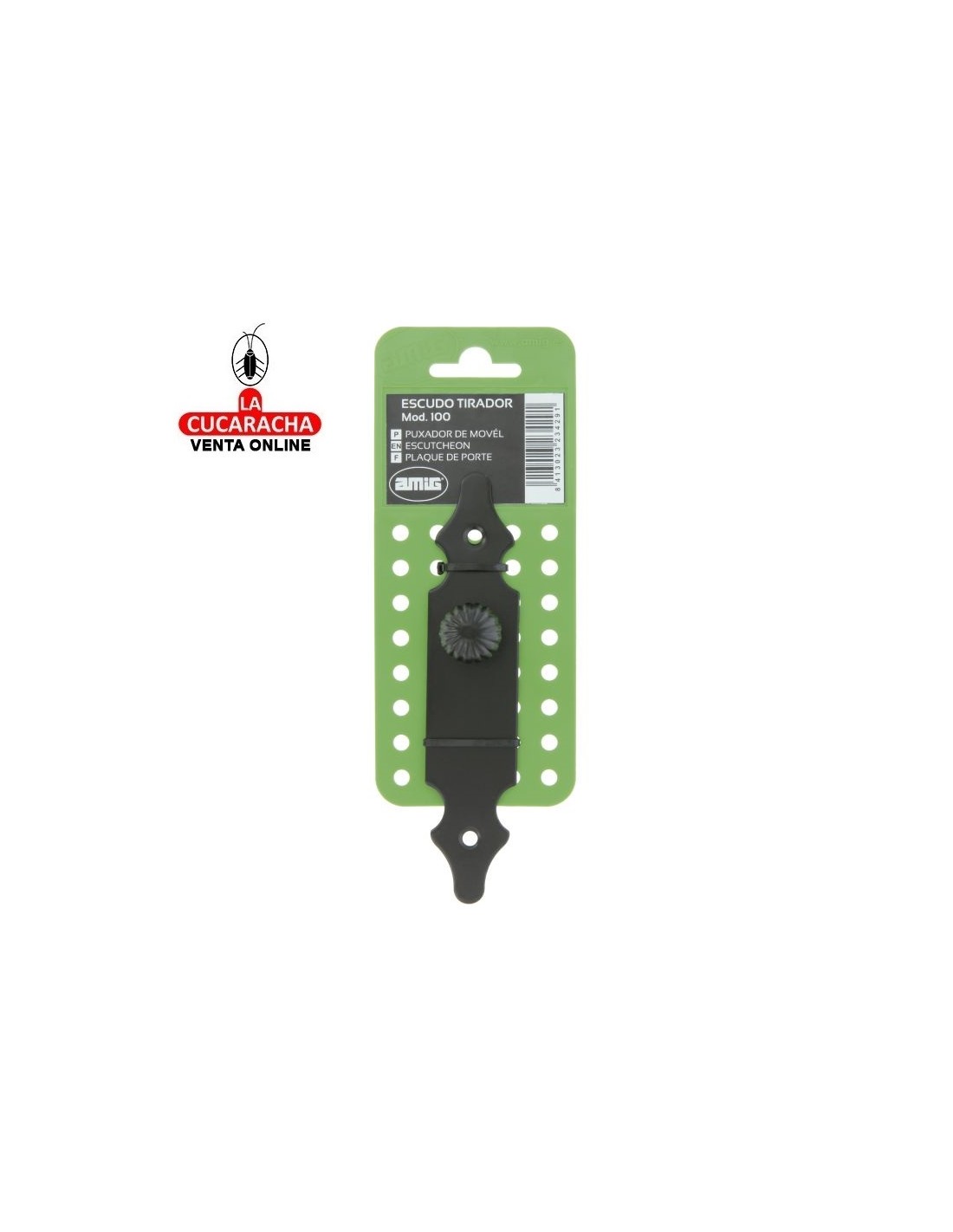 Escudo tirador fabricado en acero. Con placa lisa. Incluye tornillería.