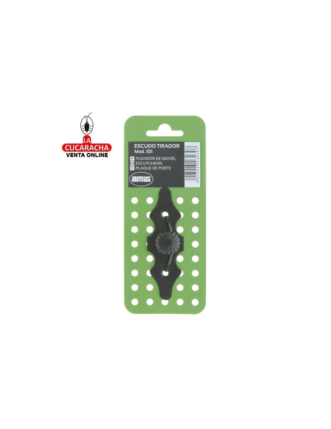 BLISTER ESCUDO TIRADOR PUERTAS RUSTICO ACERO 92X30MM MODELO 101.