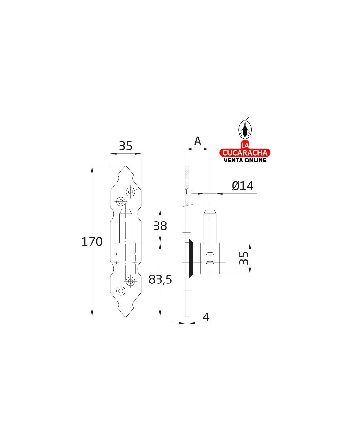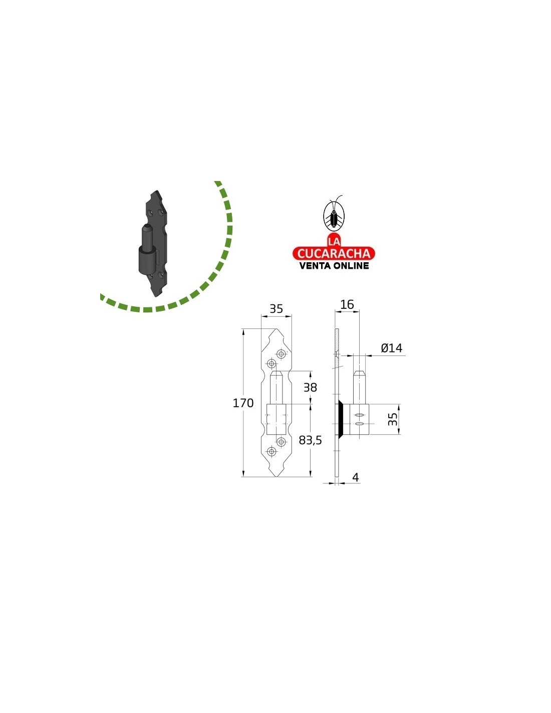 Pernio gótico fabricado en acero. Para montaje con goznes modelo 7000 a 7050. Eje: Ø 14 mm.