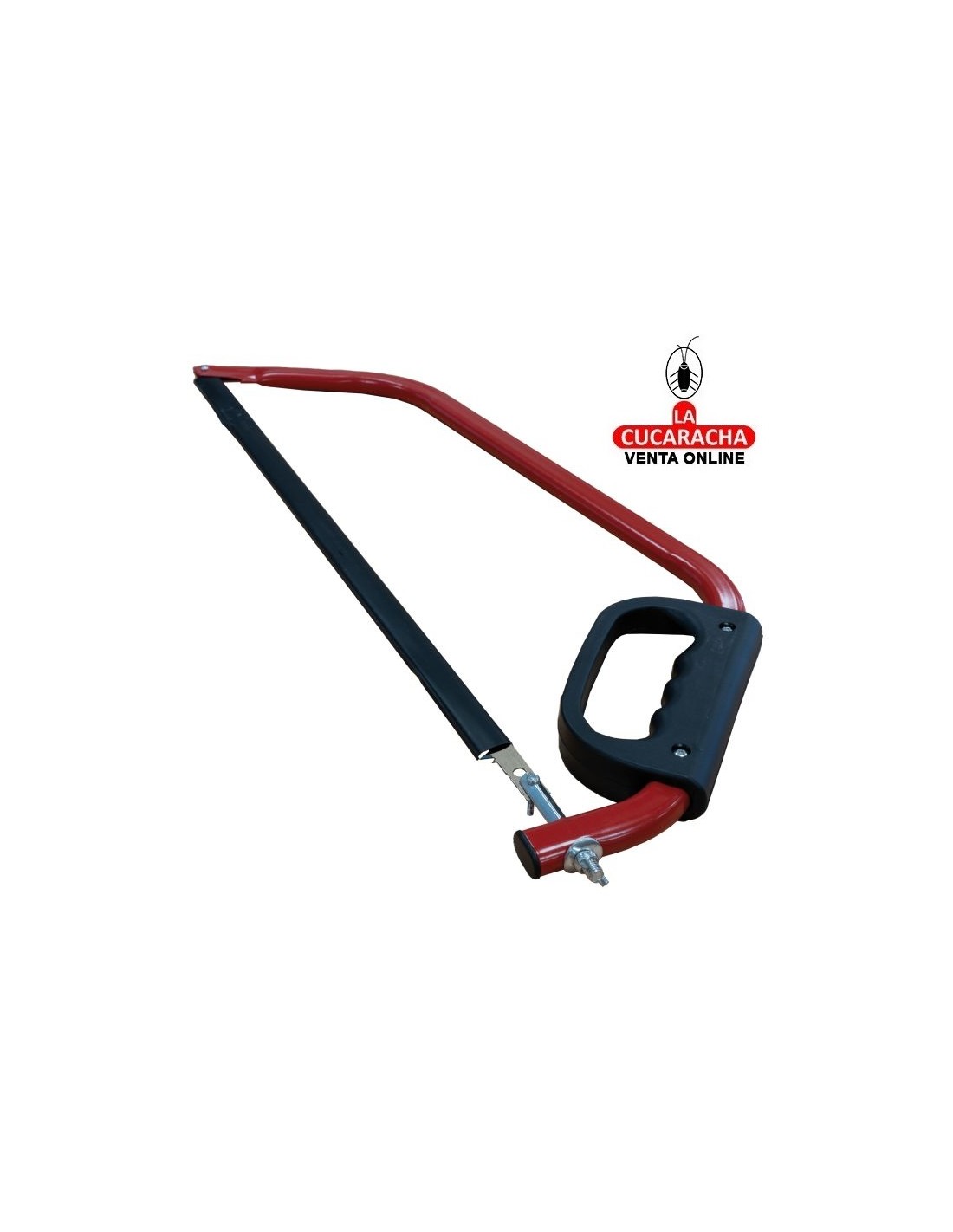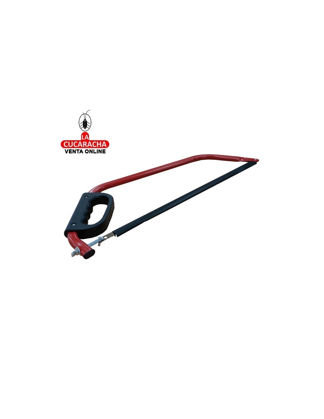 Arco tronzador con hoja de sierra recta. Dientes templados por inducción de alta frecuencia. Dentado universal para corte de madera seca. Indicado para troncos y ramas grandes. Mango ergonómico con protección para los dedos. Fácil recambio de la cuchilla.