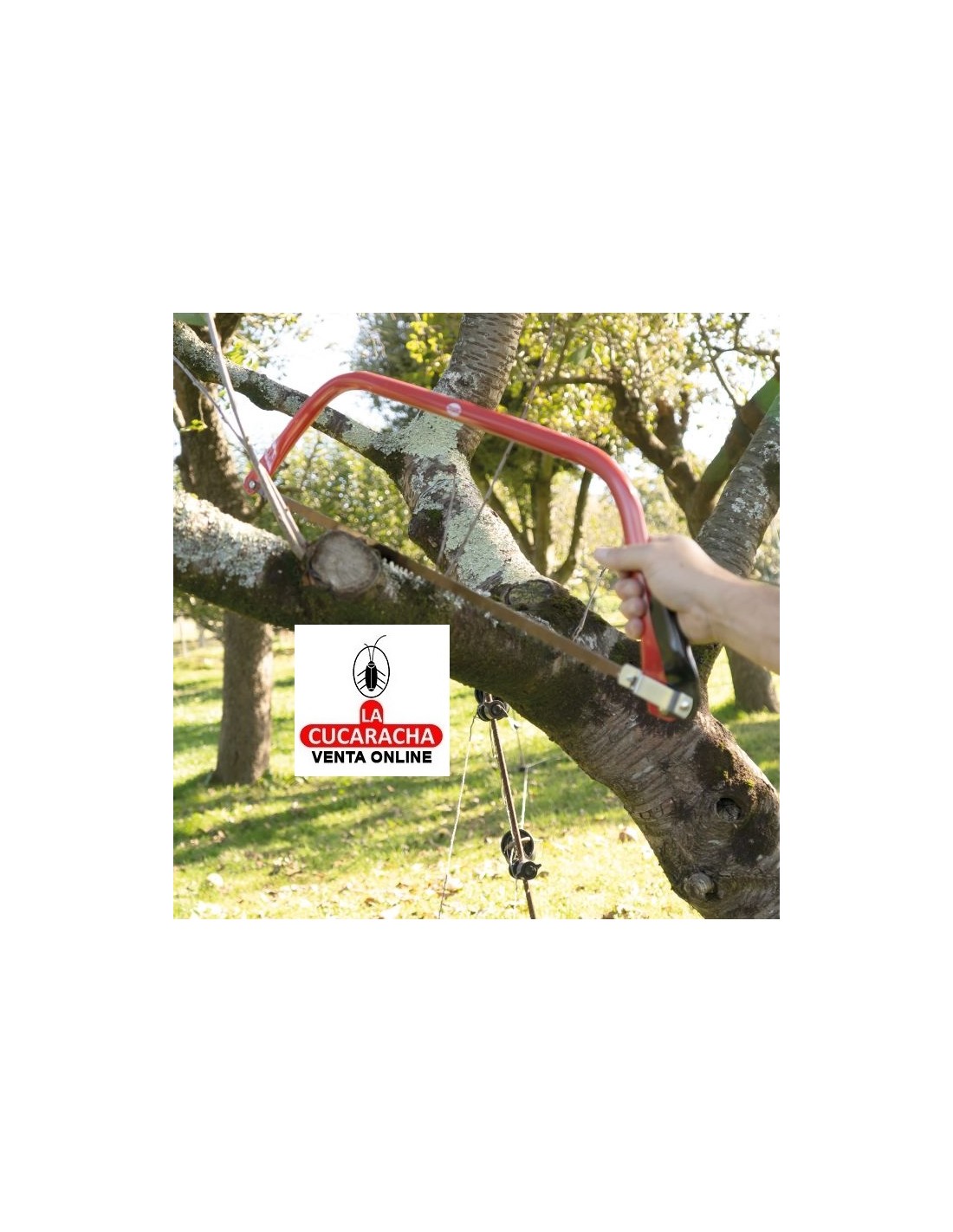ARCO TRONZADOR: Esta sierra manual con arco de acero es una herramienta manual útil para realizar cortes en madera seca CORTE: La hoja de sierra recta de 609 mm de este serrucho de poda permite realizar cortes precisos y limpios; con arco de acero resistente que mantiene la hoja en tensión. USOS: El arco tronzador con sierra es una herramienta indispensable para cualquier persona que trabaje en el jardín; es óptimo para cortar troncos y ramas de diferentes tipos de madera RESISTENTE: Esta sierra para jardinería está fabricada en acero; sus dientes templados por inducción con alta frecuencia ofrecen amplia resistencia y durabilidad