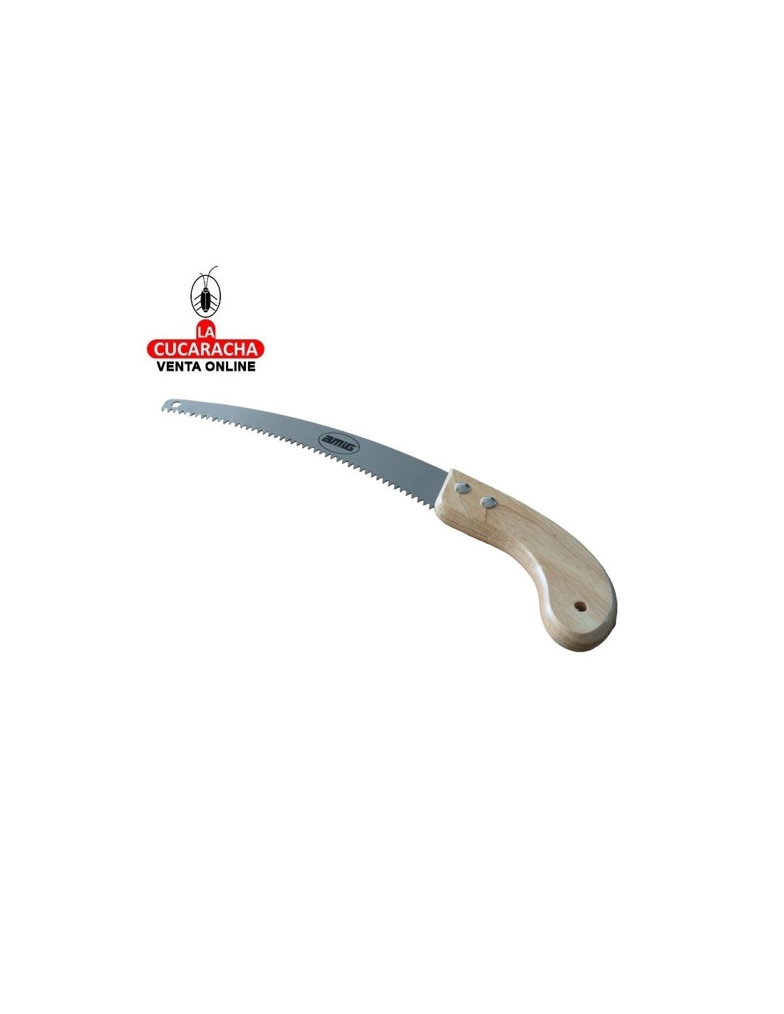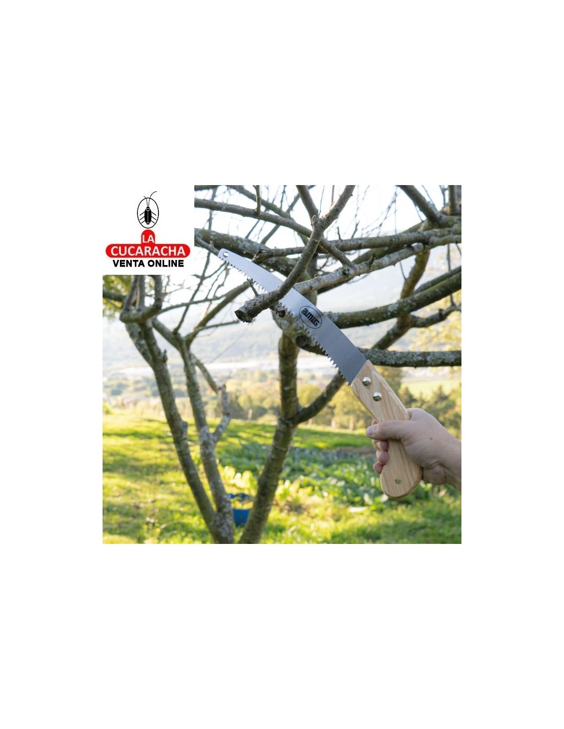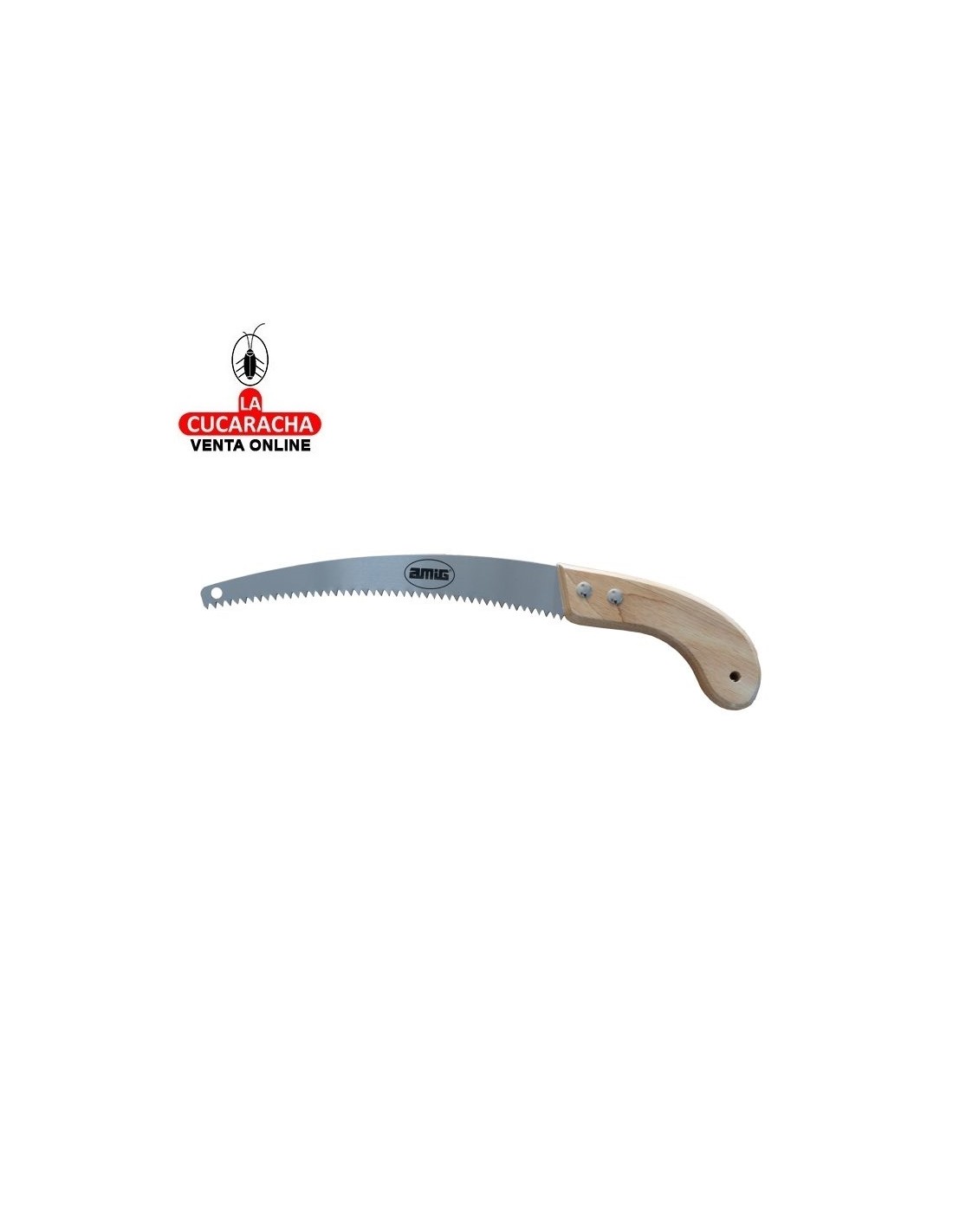 RESISTENTE: El serrucho de poda con mango de madera es una herramienta de óptima calidad y resistencia gracias a su hoja de acero inoxidable. USOS: Sierra de mano para cortar ramas, serrar, podar y cortar; apto para uso doméstico y profesional; esta herramienta es óptima para trabajos de acondicionamiento y limpieza en jardinería. FUNCIONAL: Su hoja curva de 305mm permite un corte preciso, ya que permite seguir la guía de corte de forma ágil; fabricada en acero de óptima durabilidad que ofrece un corte óptimo y óptima resistencia. ERGONÓMICA: Agarre cómodo y seguro: el mango de este serrucho está especialmente diseñado para ser ergonómico y antideslizante proporcionando un agarre cómodo y seguro.