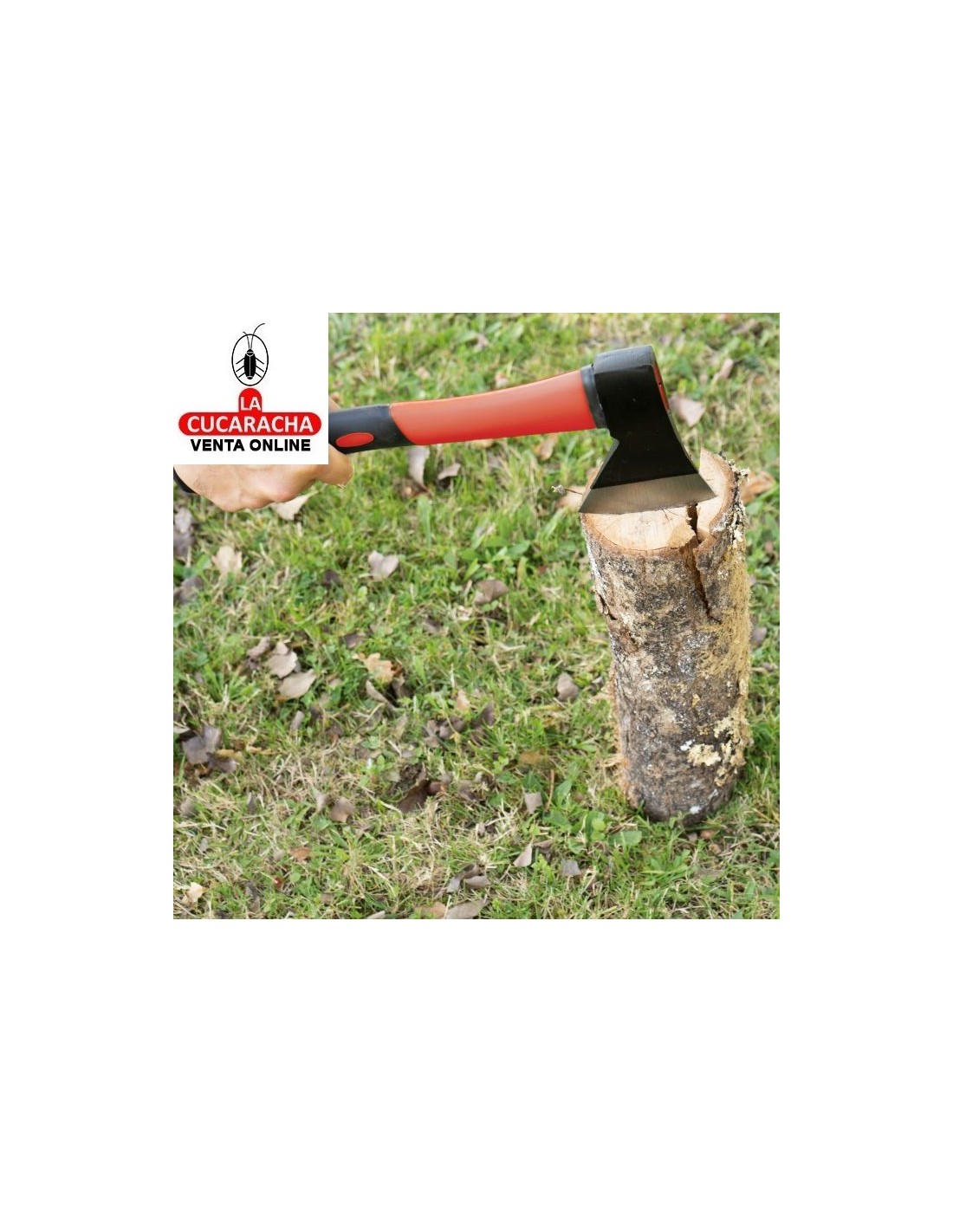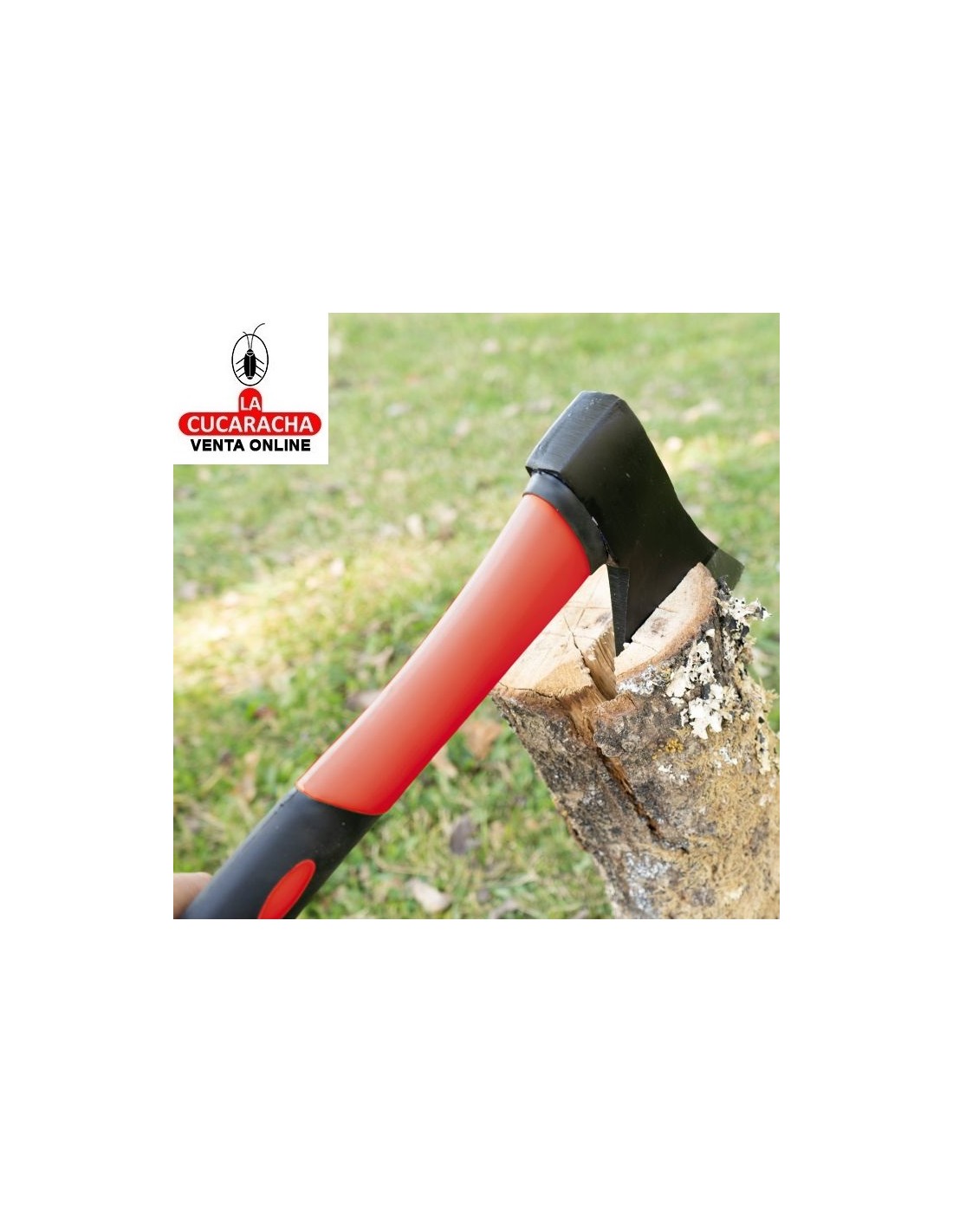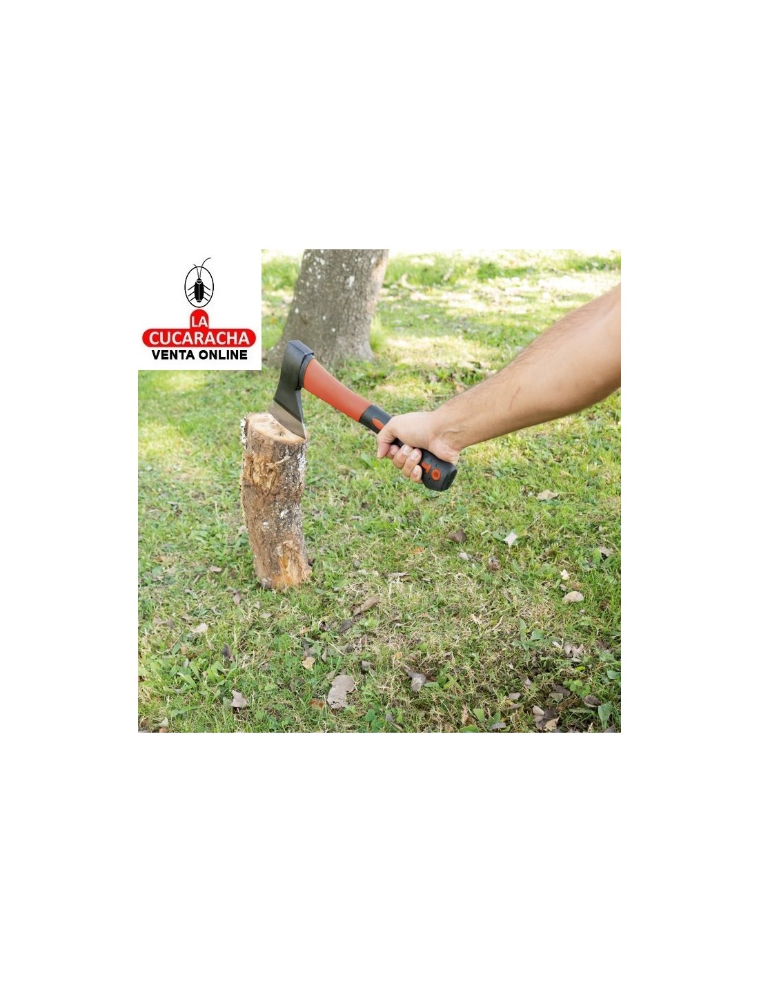Hacha con mango de nylon y goma. Hoja de acero al carbono. Mango ergonómico y antideslizante. Óptima absorción de vibraciones.