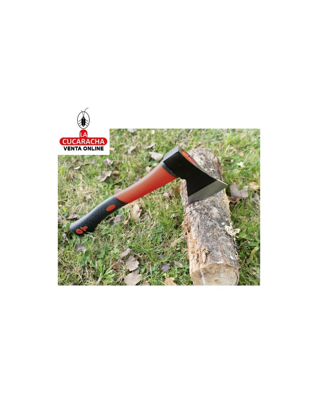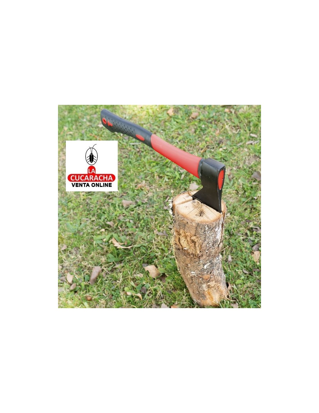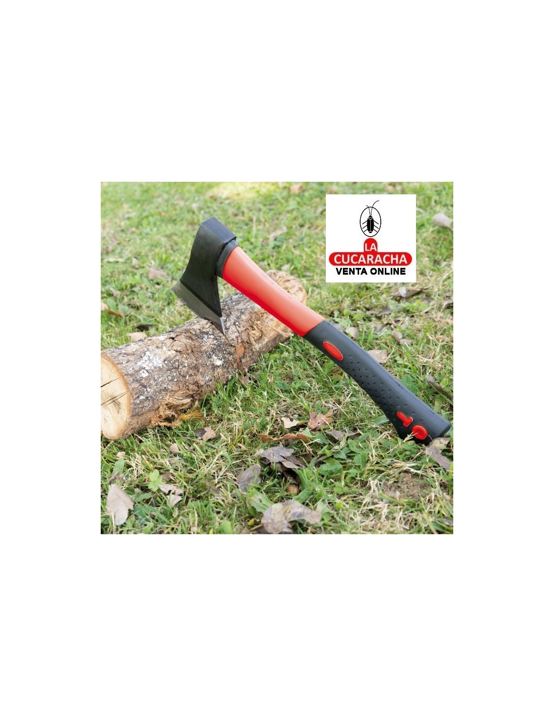 Hacha con mango de nylon y goma. Hoja de acero al carbono. Mango ergonómico y antideslizante. Óptima absorción de vibraciones.