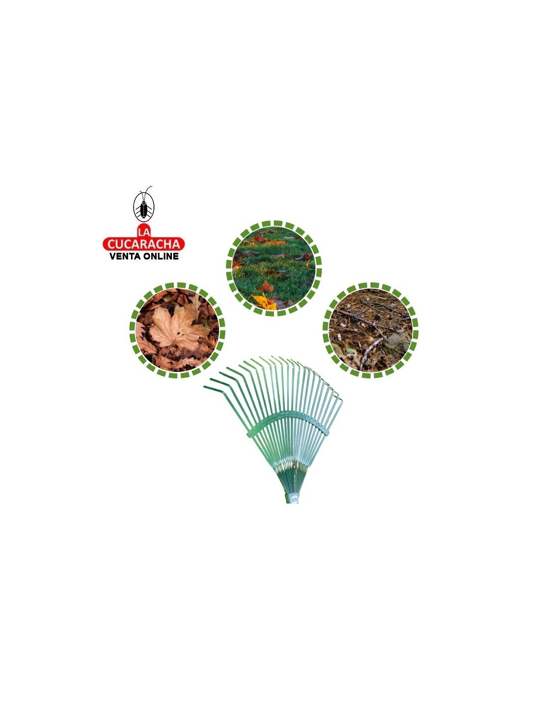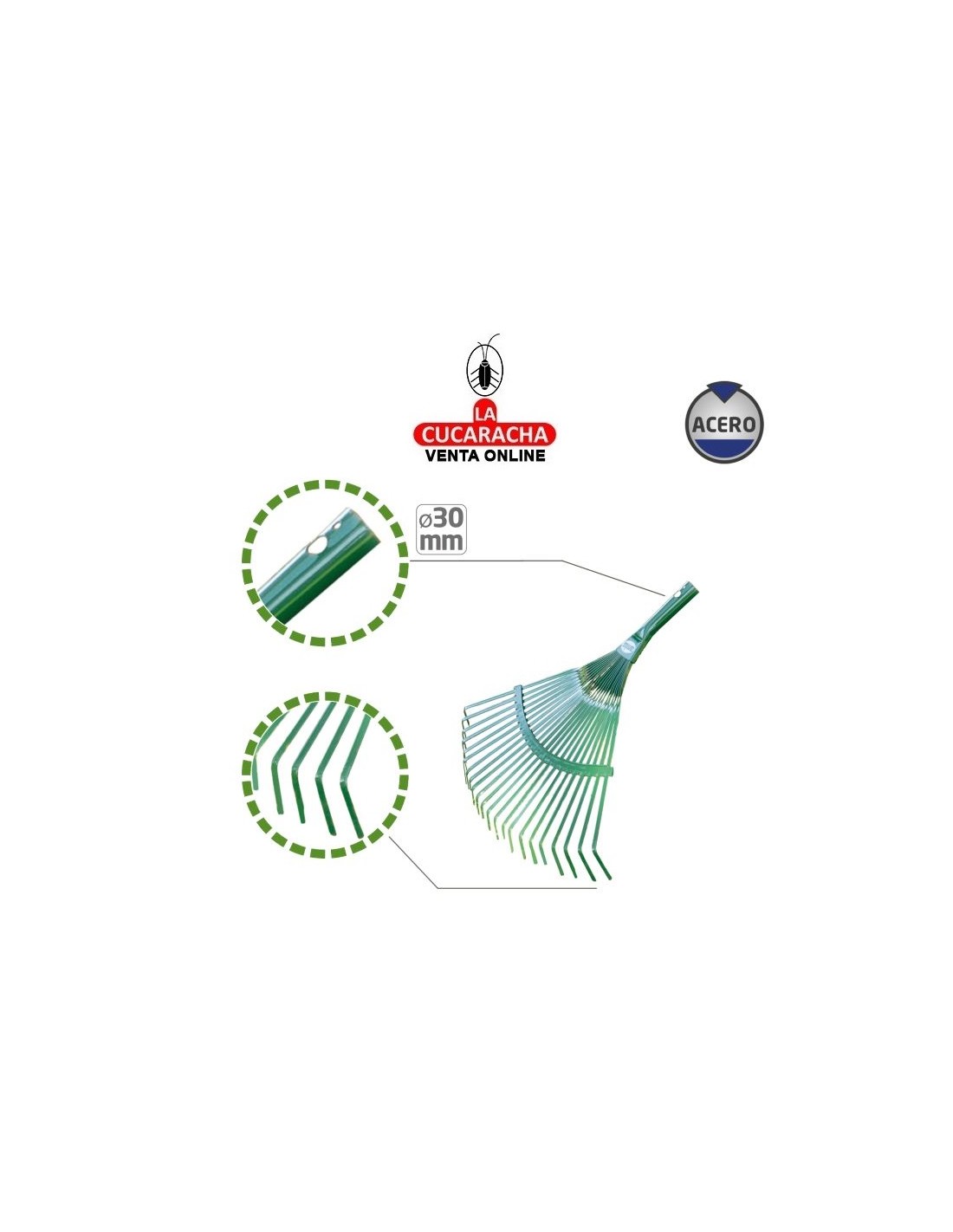ESCOBA: El recogedor de acero de alta calidad es una herramienta imprescindible para cualquier jardinero o agricultor. Contiene 22 púas planas metálicas y lamas fijas para recolectar eficazmente. Mango no incluido. CARACTERÍSTICAS: Fabricado en acero de mucha calidad para poder hacer un trabajo eficiente y preciso. Este tipo de herramientas para recoger aseguran que su césped luzca limpio y saludable. USOS: Esta escoba exterior está diseñado para barrer y recoger hojas y rastrojos del jardín o césped sin dañarlo. Sus dientes fuertes y bien espaciados permiten que se pueda trabajar con agilidad y sin dañarlo. Asimismo, su construcción en acero de alta calidad asegura que no se estropeará con el tiempo. MEDIDAS: Este recogedor de hojas tiene unas medidas de 40x46x4 centímetros y un peso de 0,47 kilogramos. El diámetro del casquillo de 3 centímetros garantiza una mayor estabilidad durante su uso. Es compatible con los mangos estándar.