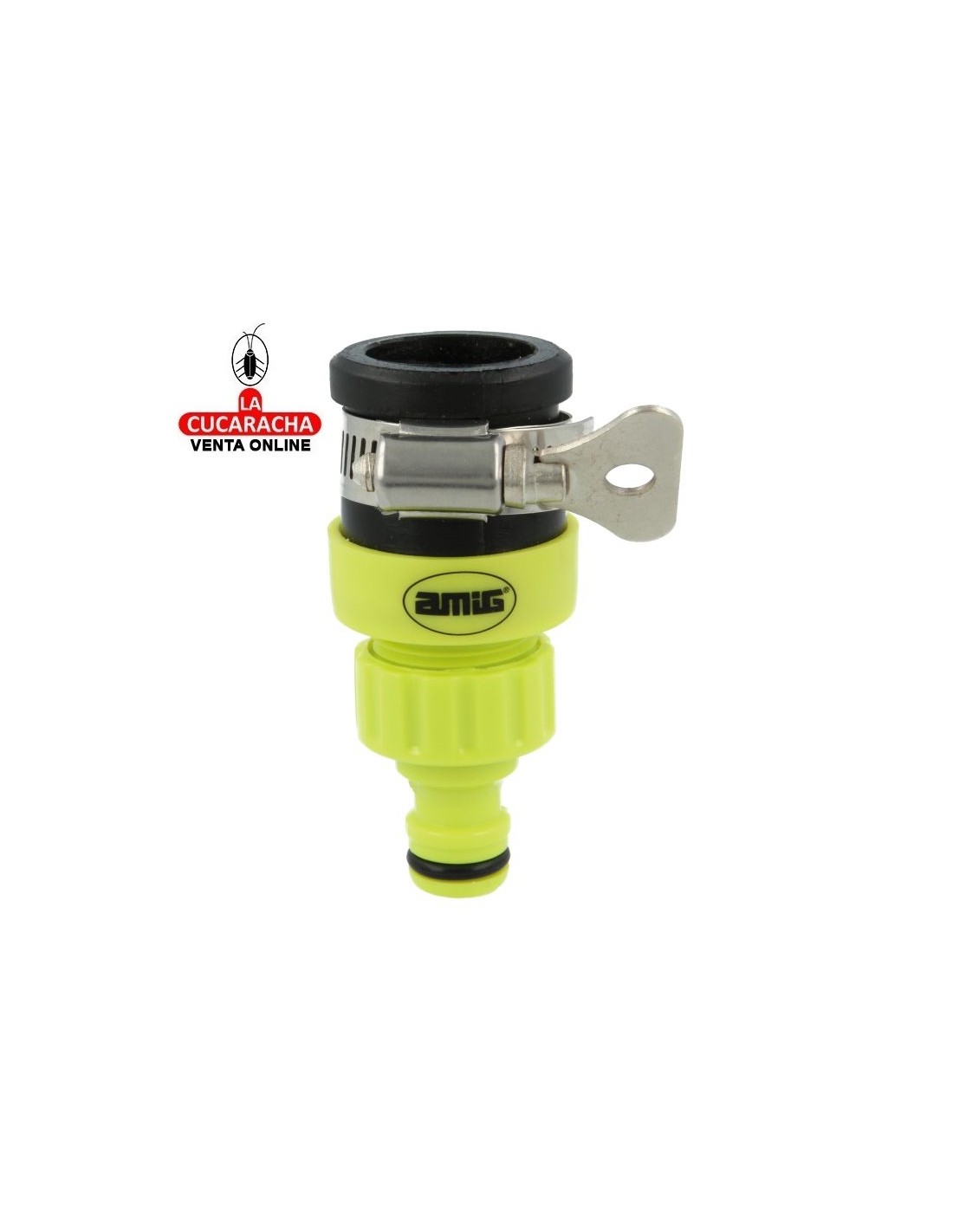 Adaptador de manguera para uso universal. Fabricado en plástico ABS. Tornillo de mariposa de acero inoxidable. Adecuado para la mayoría de los grifos y fácil de instalar.