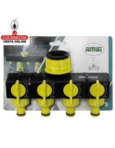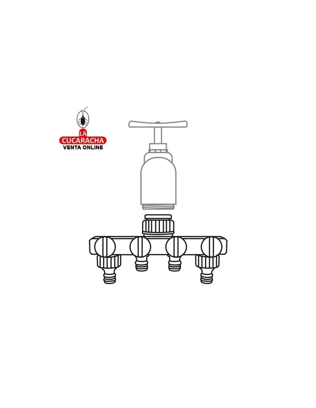 Conector con válvula de 4 vías regulable. Fabricado en plástico ABS de alta calidad. Convierte un solo grifo en 4 conectores separados. 4 interruptores para controlar la salida de agua individualmente.
