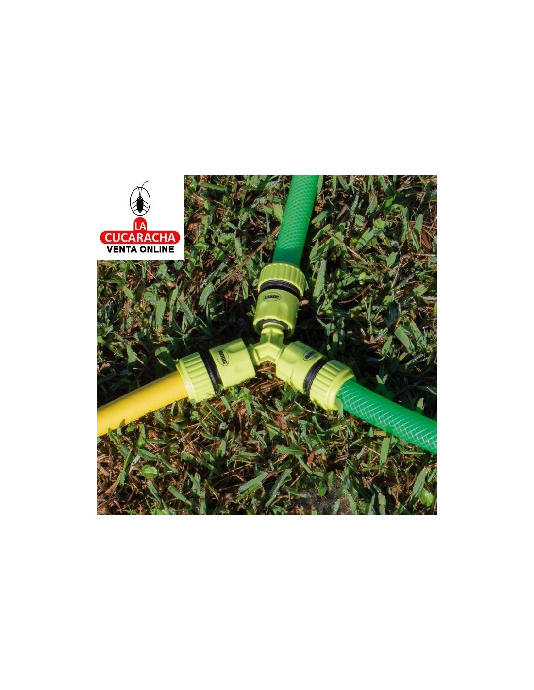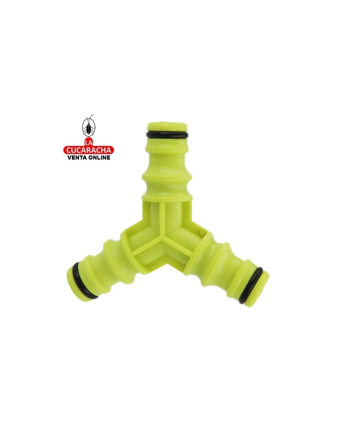 Derivación triple de mangueras. Fabricado en plástico ABS. Para conectores rápidos de las mangueras. Divide un flujo de agua en dos direcciones diferentes.