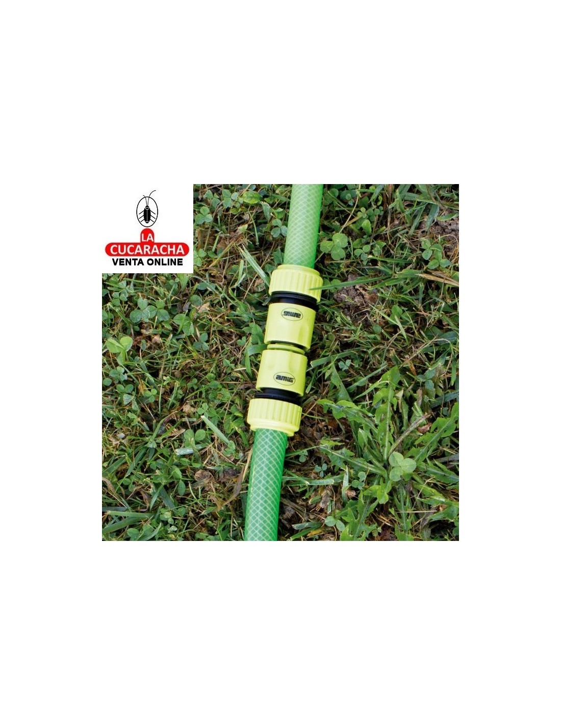 MANGUITO PARA UNIR 2 MANGUERAS: Es la solución perfecta para unir dos mangueras equipadas con conectores hembra. Además, su diseño permite un cierre hermético que evita fugas, asegurando que el flujo de agua se mantenga constante y sin pérdidas. USOS Y RECOMENDACIONES: Es muy fácil de usar, simplemente conecta las dos mangueras y cierra la abrazadera. Con su sistema de cierre seguro, puedes estar tranquilo de que las mangueras permanecerán conectadas incluso bajo alta presión de agua. INFORMACIÓN TÉCNICA DETALLADA: Las medidas del maguito son aptas para todos los conectores hembra Amig para mangueras. Además, ha sido elaborado con plástico abs, un material resistente a los cambios del clima, como la lluvia y el calor, y al roce. ENVASE Y CARACTERISTICAS : este artículo viene en un envase unitario para poder colocarlo en display. El material del manguito es de alta calidad por lo que lo convierte en un accesorio de larga duración tanto para utilizar en casa como de manera profesional.