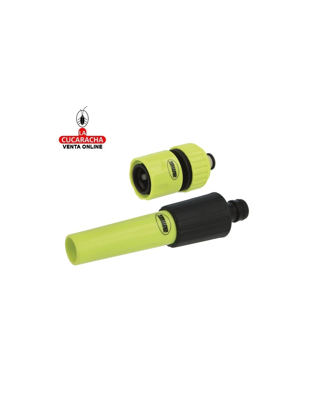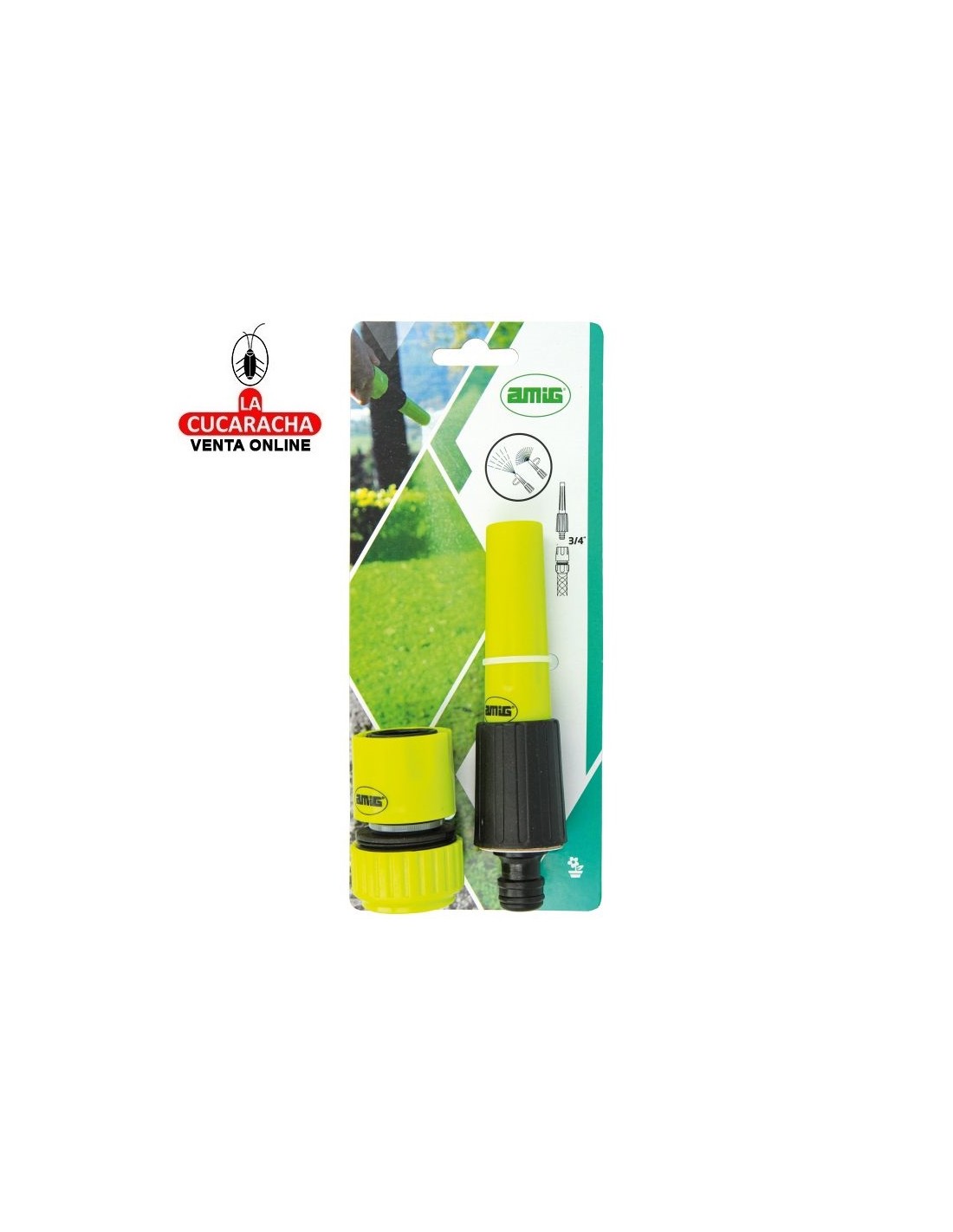 KIT DE RIEGO: Con una lanza de riego y un empalme rápido para mangueras de 3/4" con función stop, podrás regar fácilmente y sin preocuparte por fugas o goteos a través de la unión entre ambas piezas. Además, su diseño ergonómico facilita un agarre cómodo. USOS Y RECOMENDACIONES: La lanza de riego permite un control preciso del caudal de agua, mientras que la función stop evita el desperdicio innecesario. El empalme rápido para mangueras de 3/4" hace que la conexión sea rápida, fácil, segura y sin fugas. INFORMACIÓN TÉCNICA DETALLADA: Las medidas del kit son: lanza de 120 mm y empalme de 3/4". Además, ha sido elaborado con plástico ABS, un material resistente a los cambios del clima, como la lluvia y el calor, y al roce debido a su uso continuado. ENVASE Y CARACTERISTICAS: Estos artículos vienen en un envase unitario y son un kit idóneo para poder enchufar a una manguera. Con el material ABS tiene un ajuste seguro que evita que se afloje o salga de la conexión por lo que no tendrás fugas.