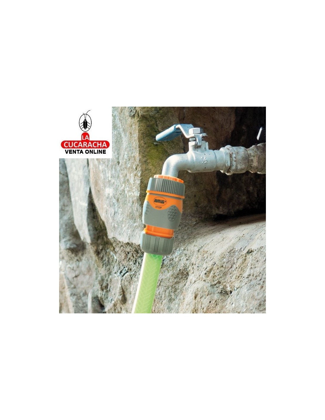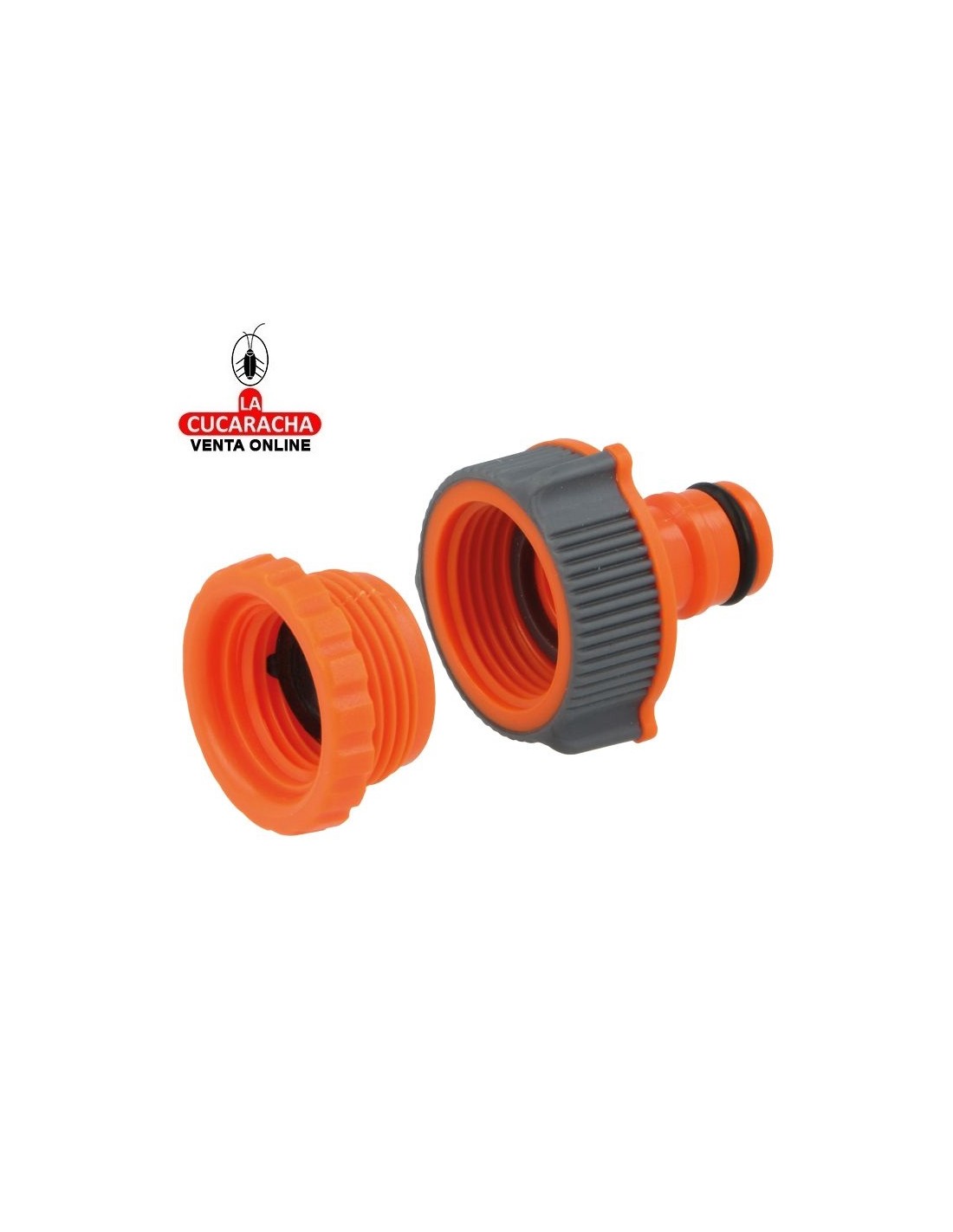 Adaptador y reductor para unión de grifo y manguera. Fabricado en plástico ABS y goma de alta calidad. Resistente a las heladas y a los rayos UVA. Rápida y fácil conexión de mangueras de agua.