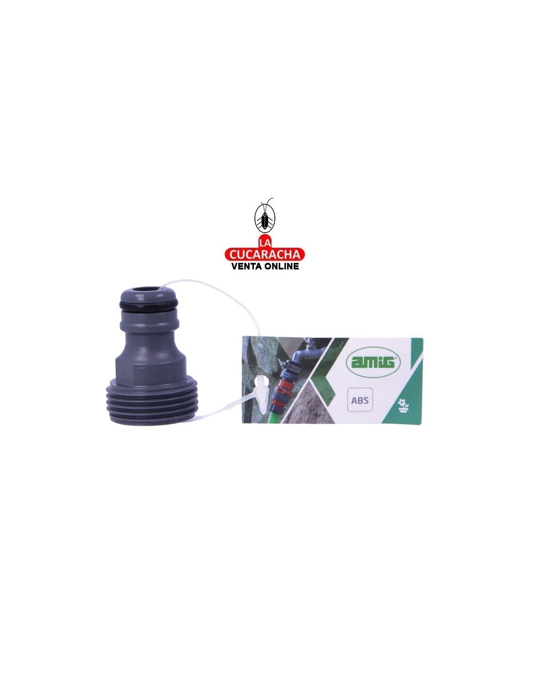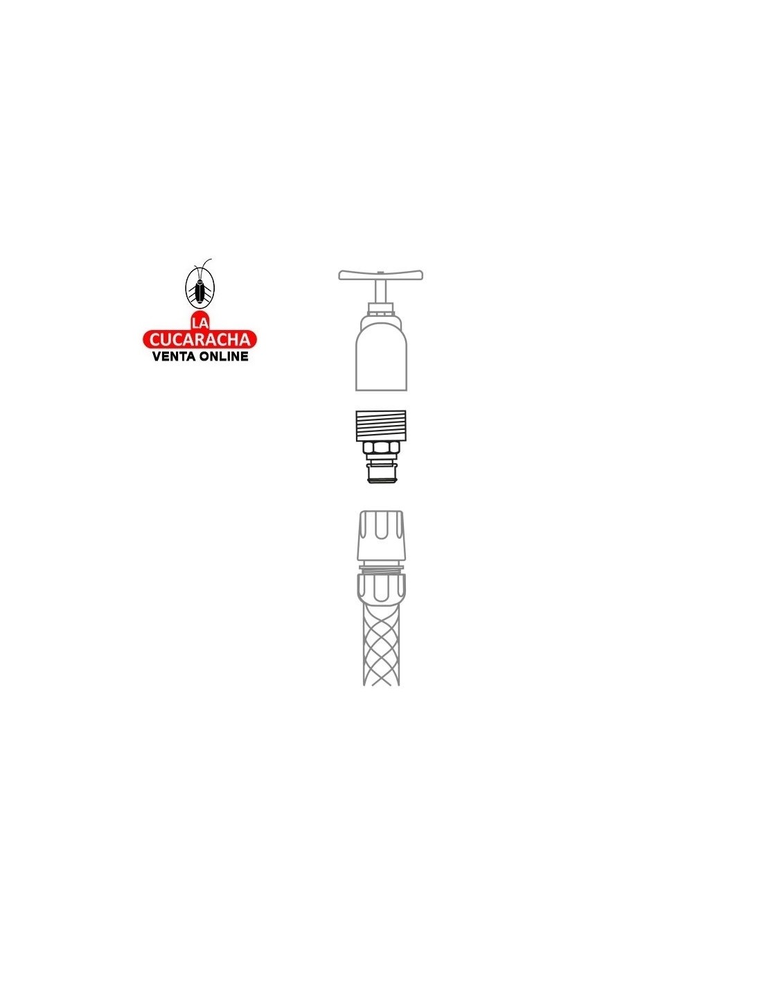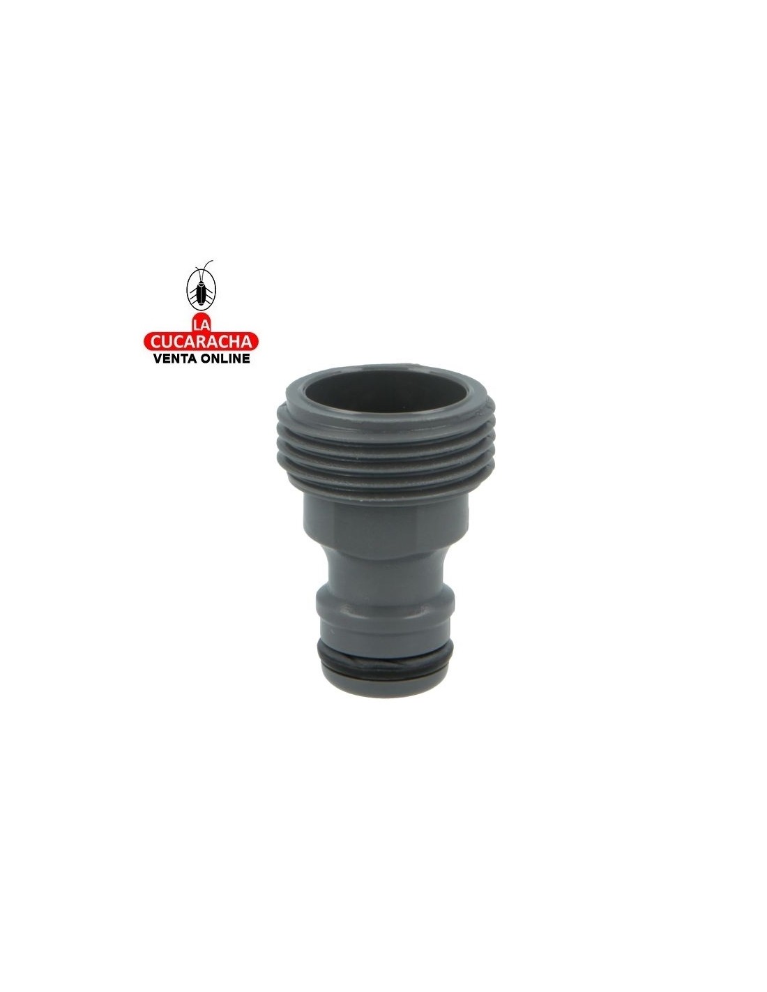 Adaptador macho con rosca para unión de grifo y manguera. Fabricado en plástico ABS y goma de alta calidad. Resistente a las heladas y a los rayos UVA. Rápida y fácil conexión de mangueras de agua.