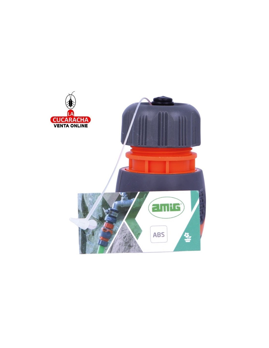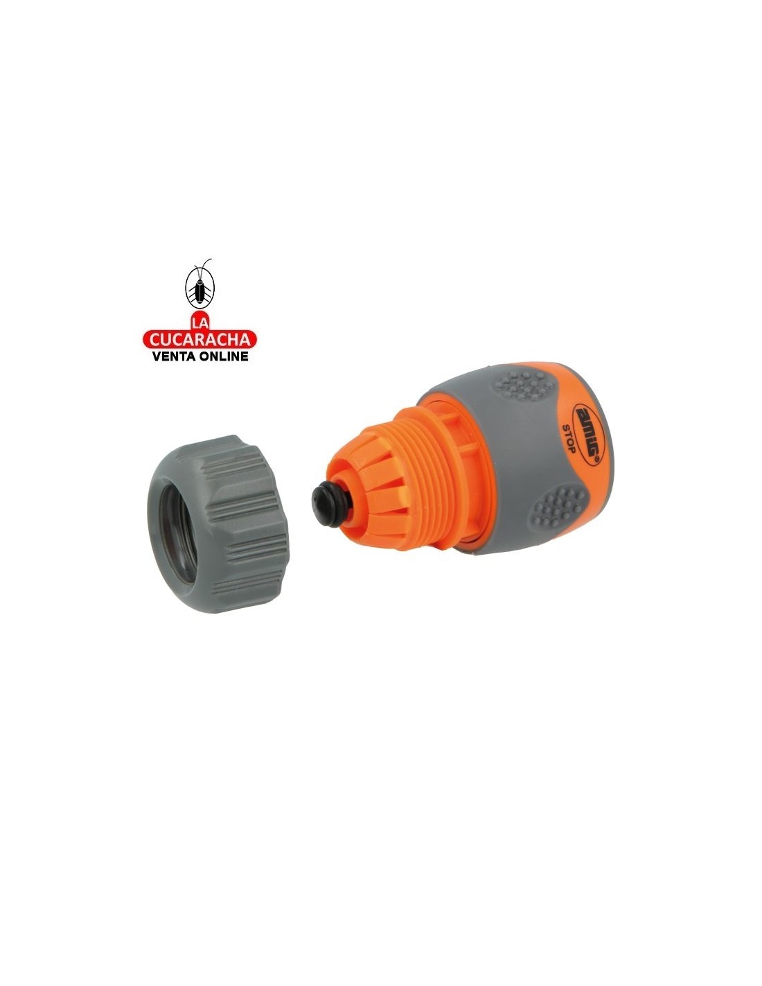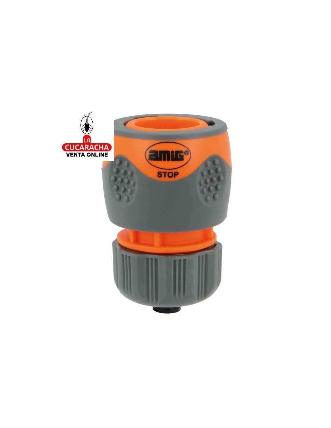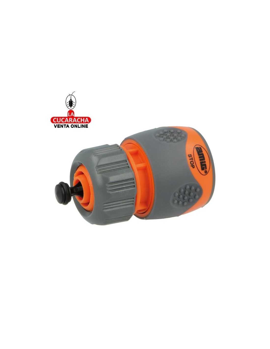 Empalme rápido de manguera. Fabricado en plástico ABS y goma de alta calidad. Sistema de clic práctico y rápido. Con función Stop.