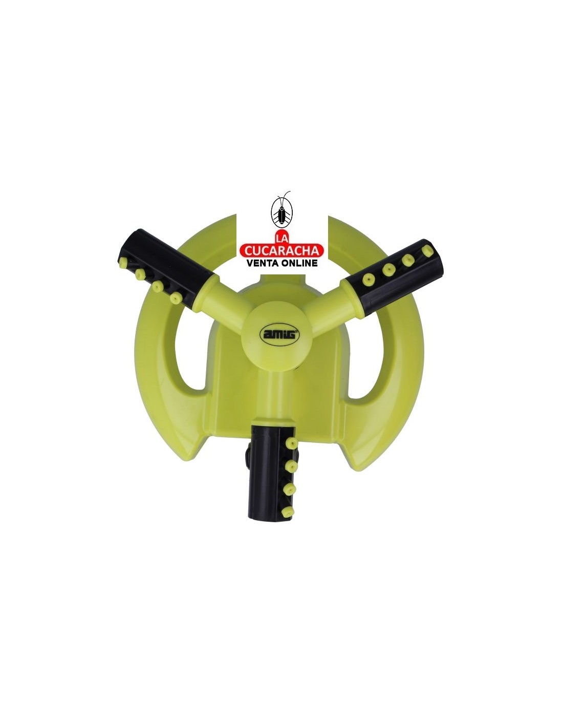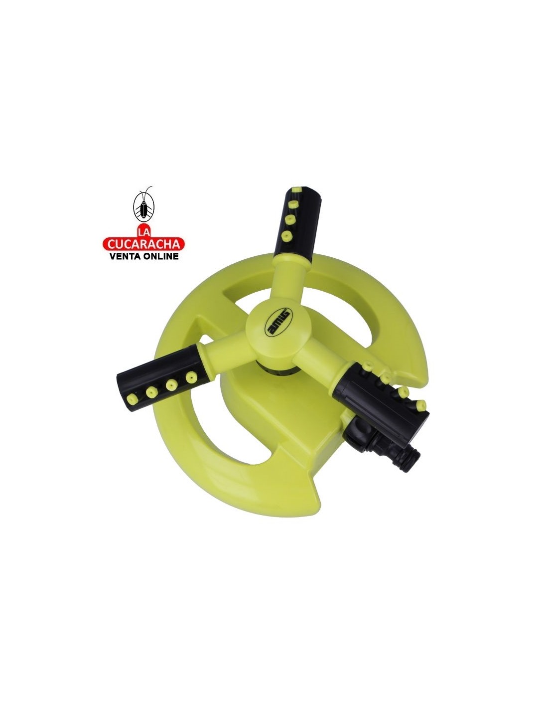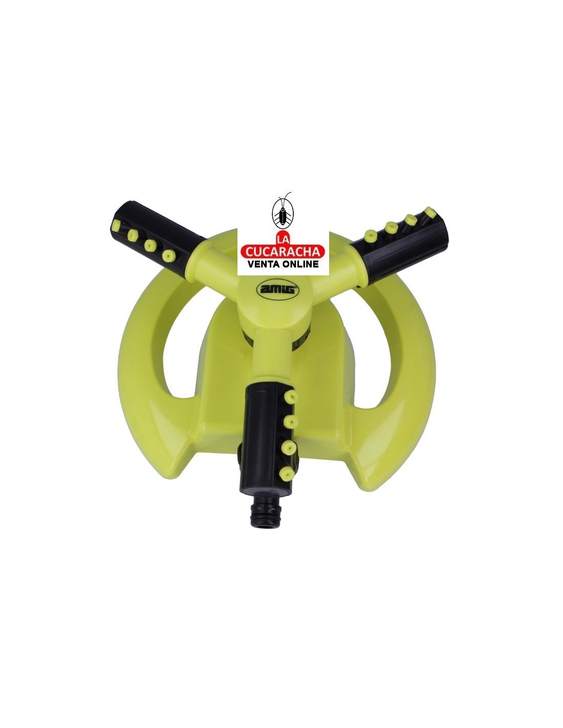 Aspersor rotativo con 3 brazos giratorios. Fabricado en ABS de alta calidad. Con conector rápido. Superficie de riego 63,5 m².