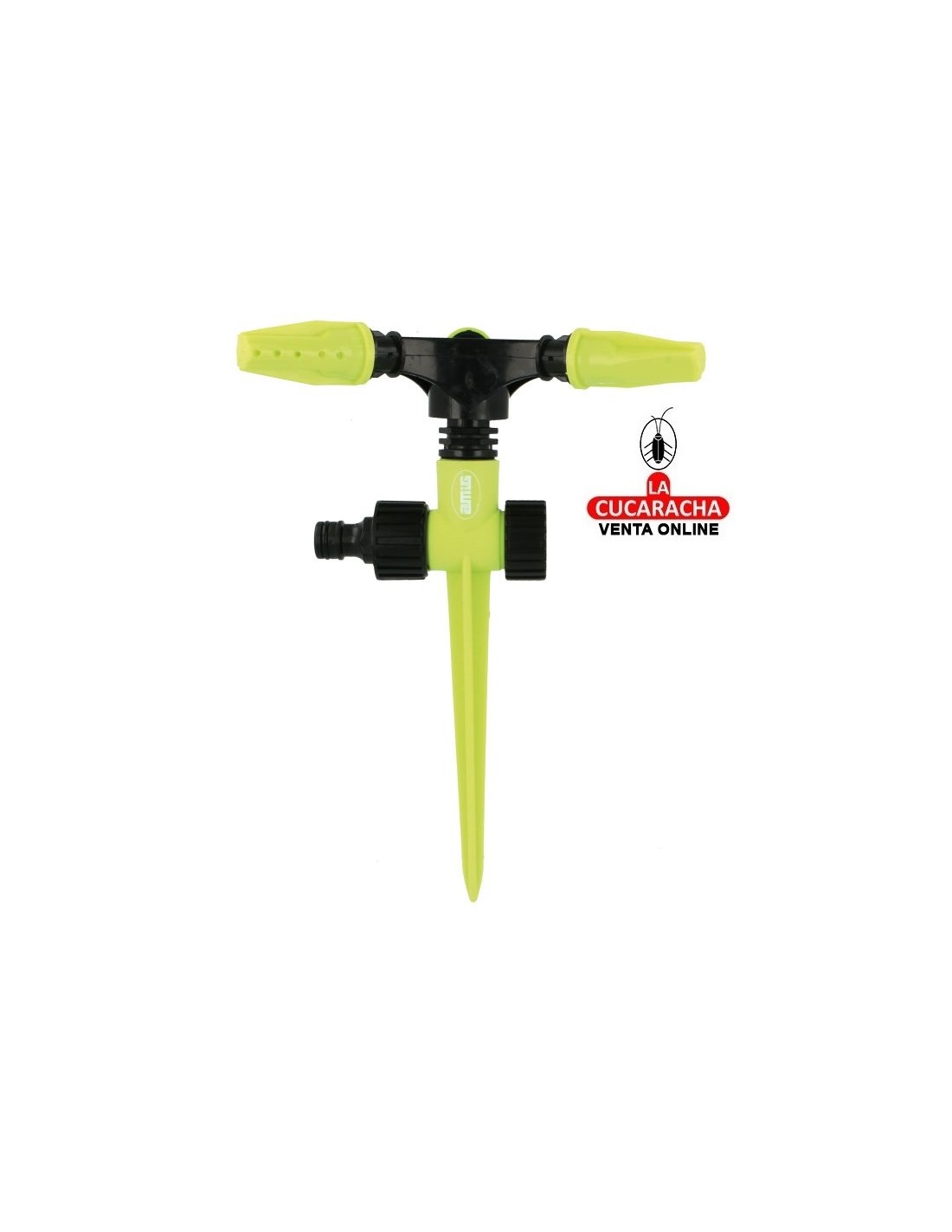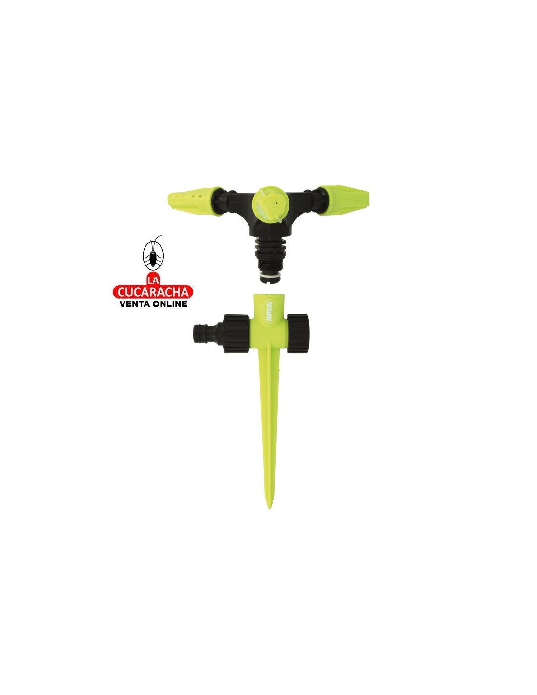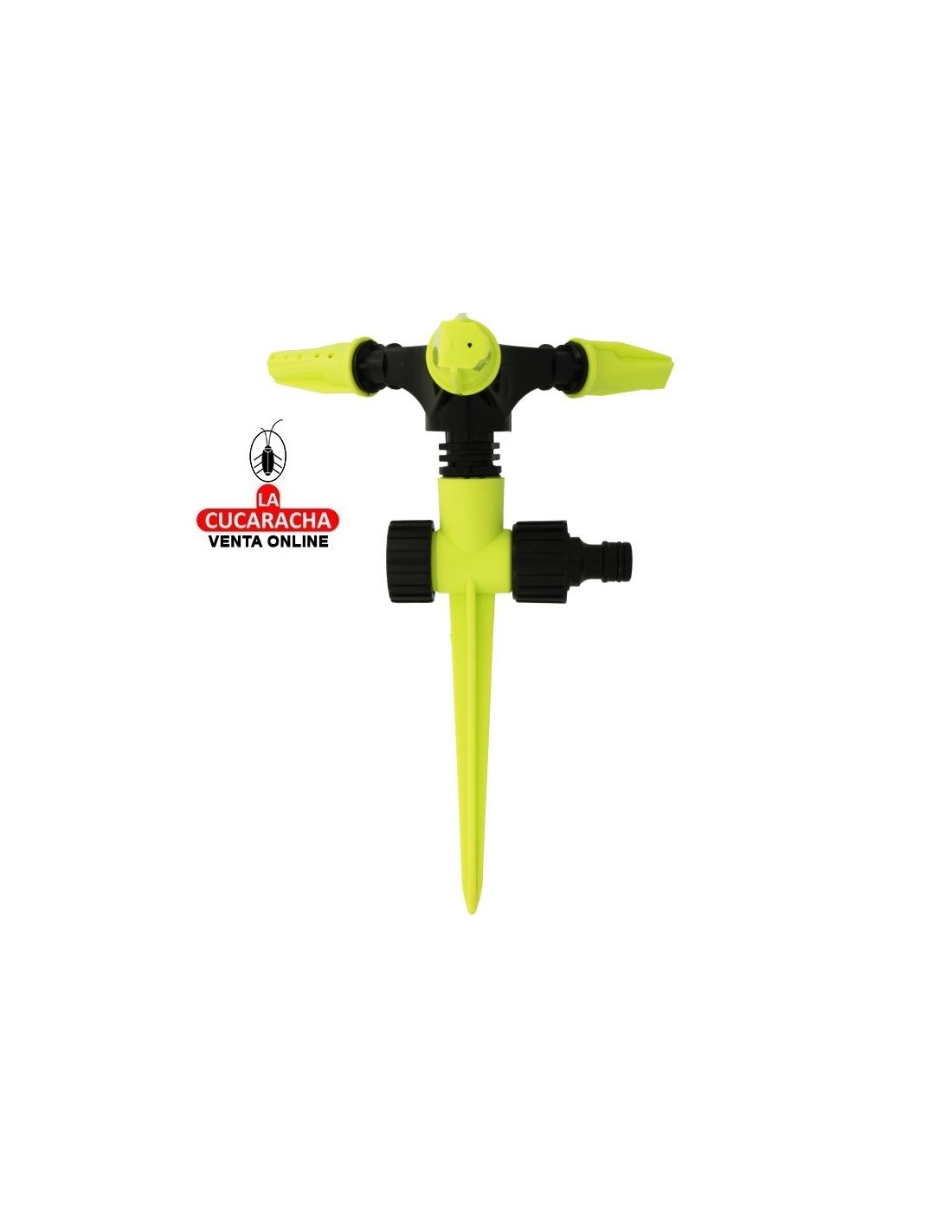 Aspersor rotativo con 3 brazos giratorios. Fabricado en ABS de alta calidad. Con conector rápido. Superficie de riego 78,5 m².