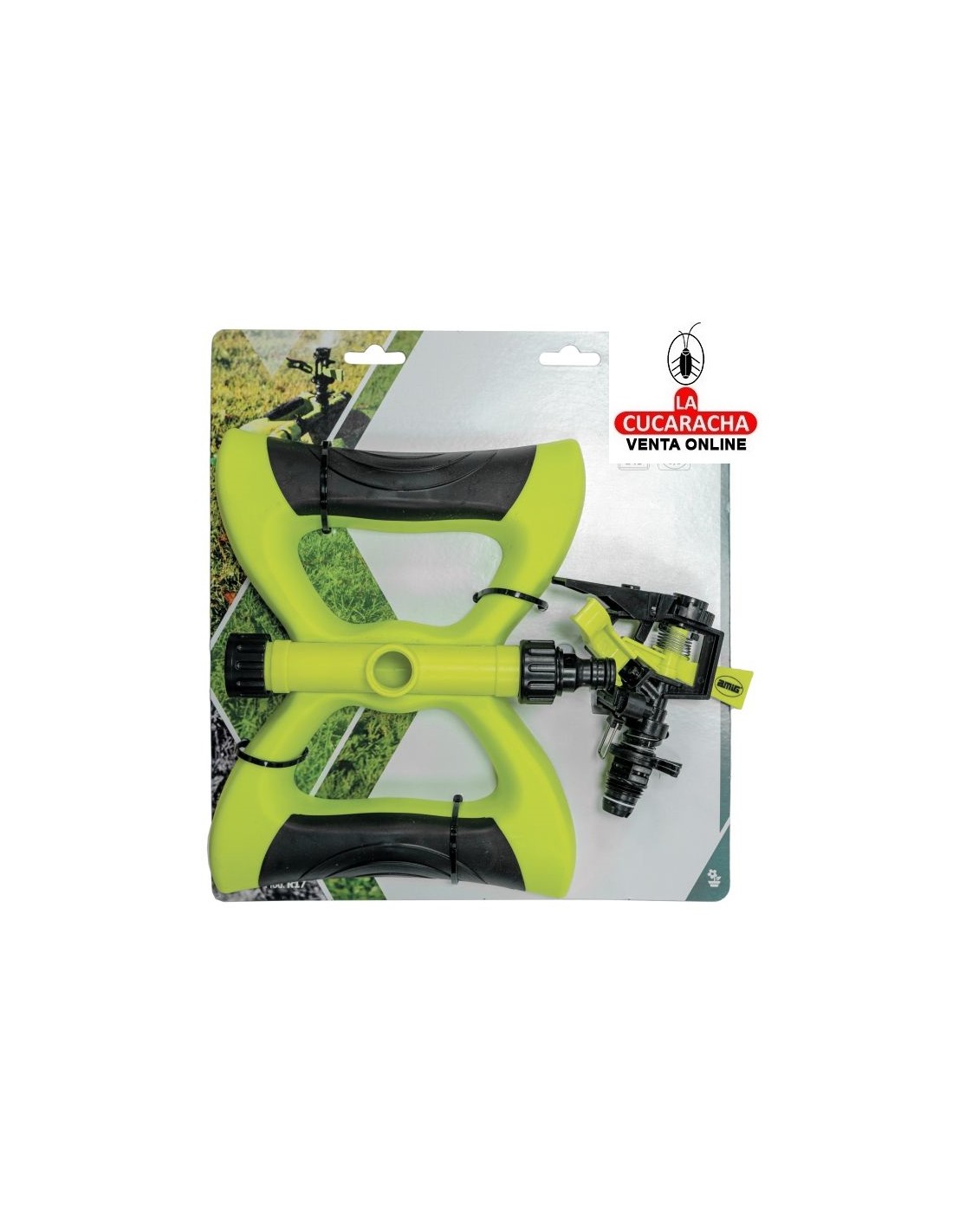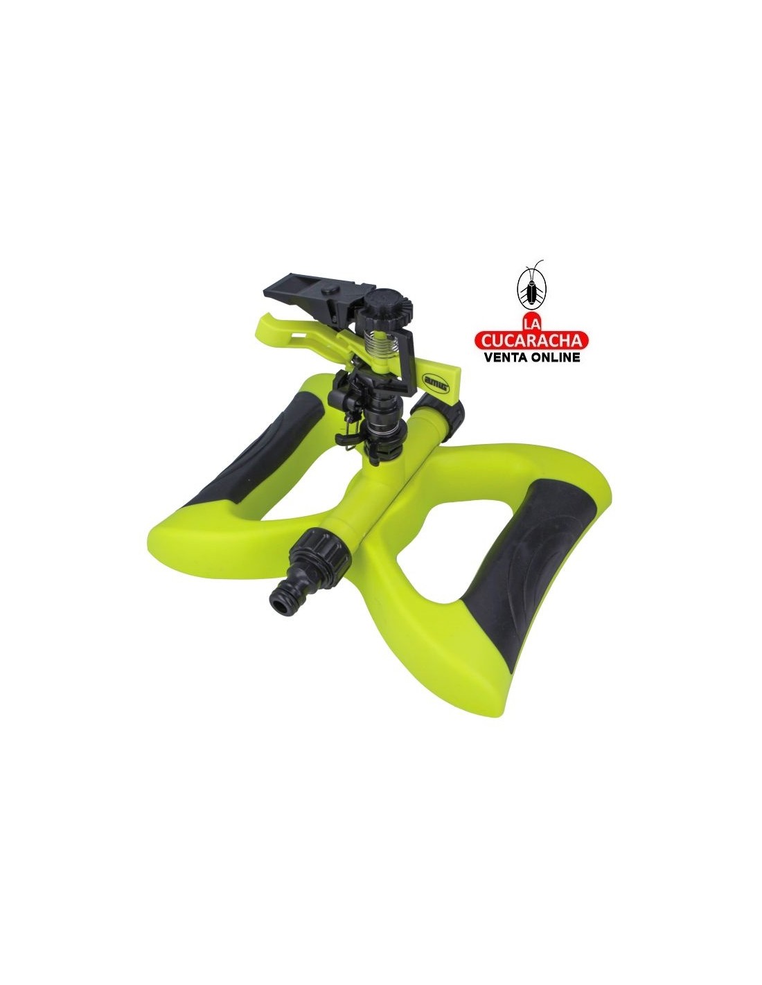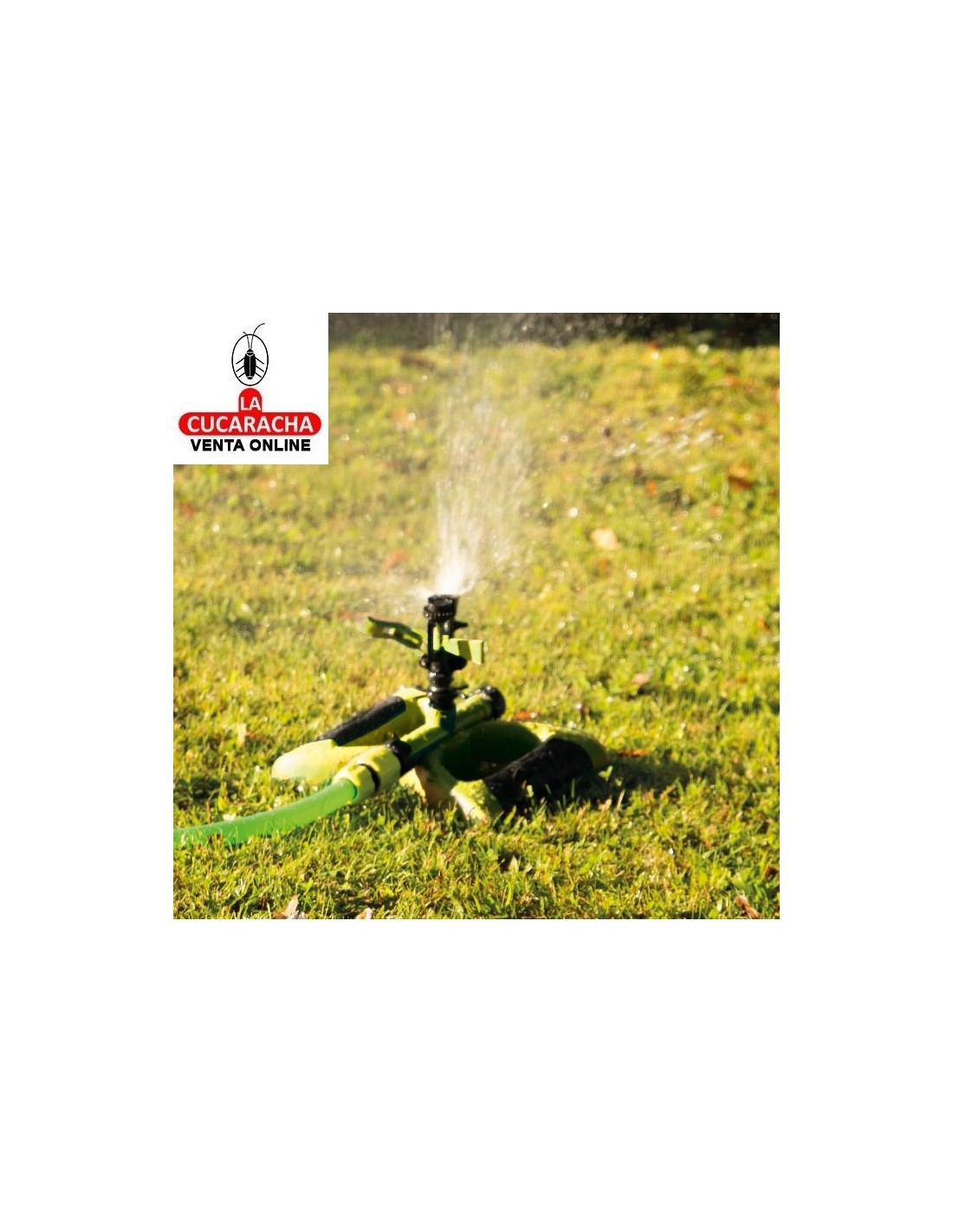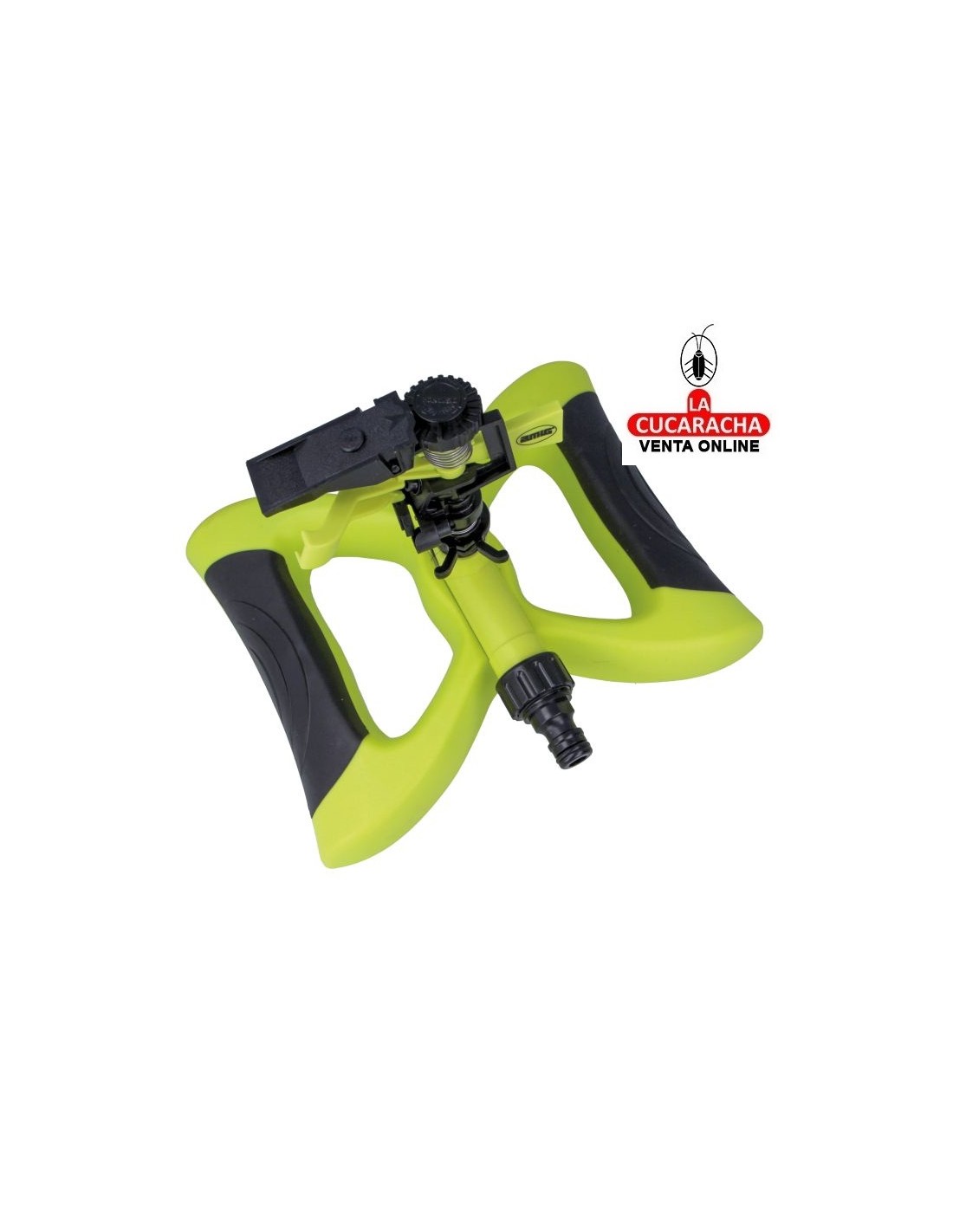 Aspersor sectorial con base patín fabricado en ABS. Fabricado en ABS de alta calidad. Con conector rápido. Superficie de riego 243 m².