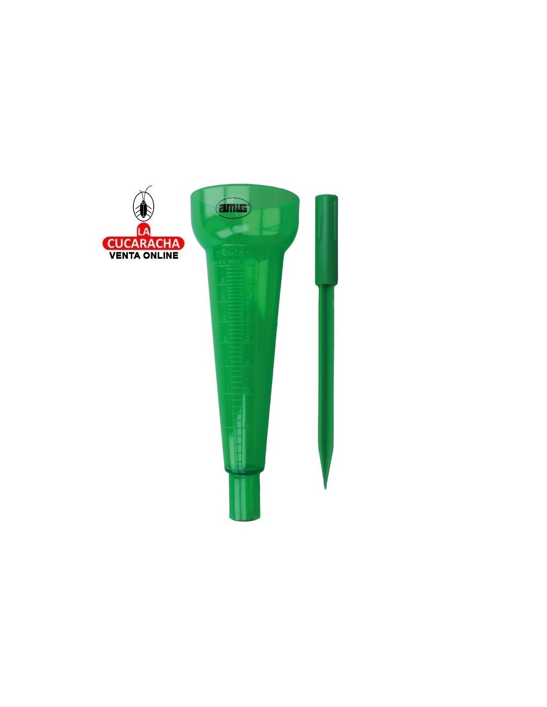 Pluviómetro graduado de 40 mm. Incluye piqueta de colocación. 1 mm de agua equivale a 1 litro.
