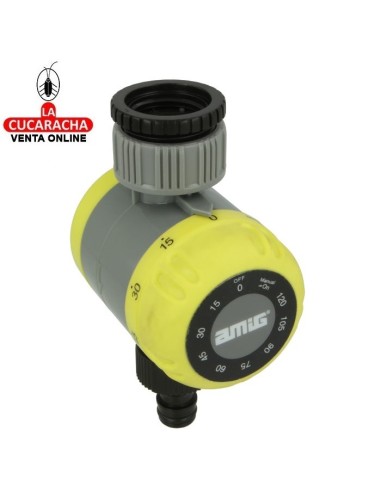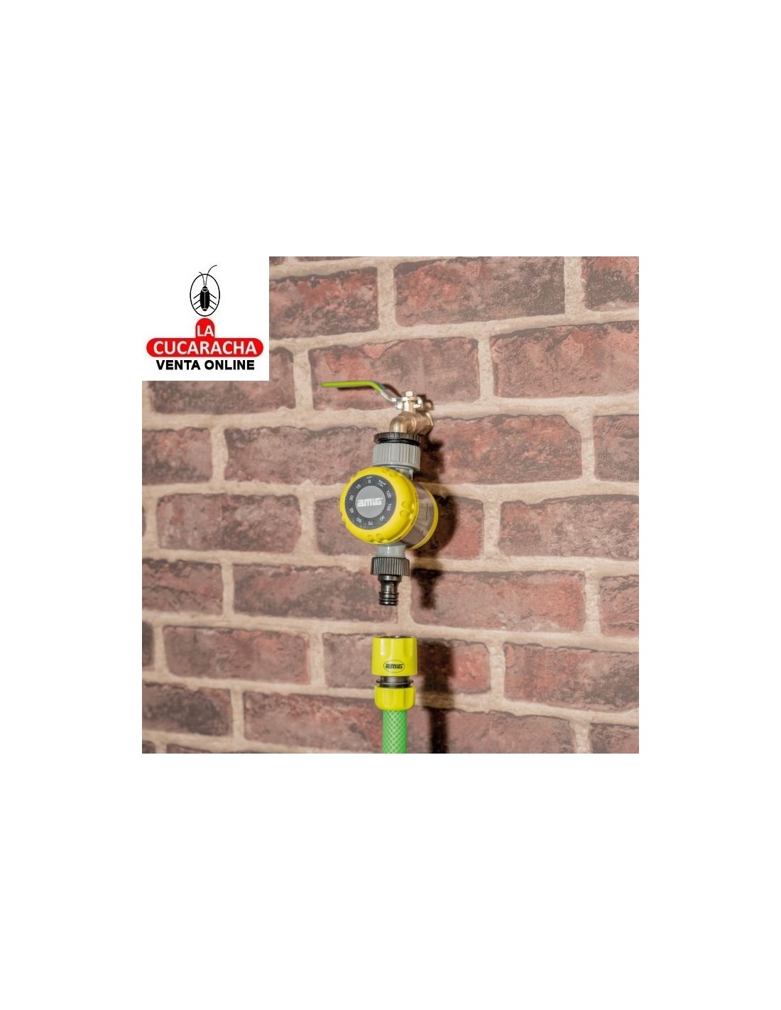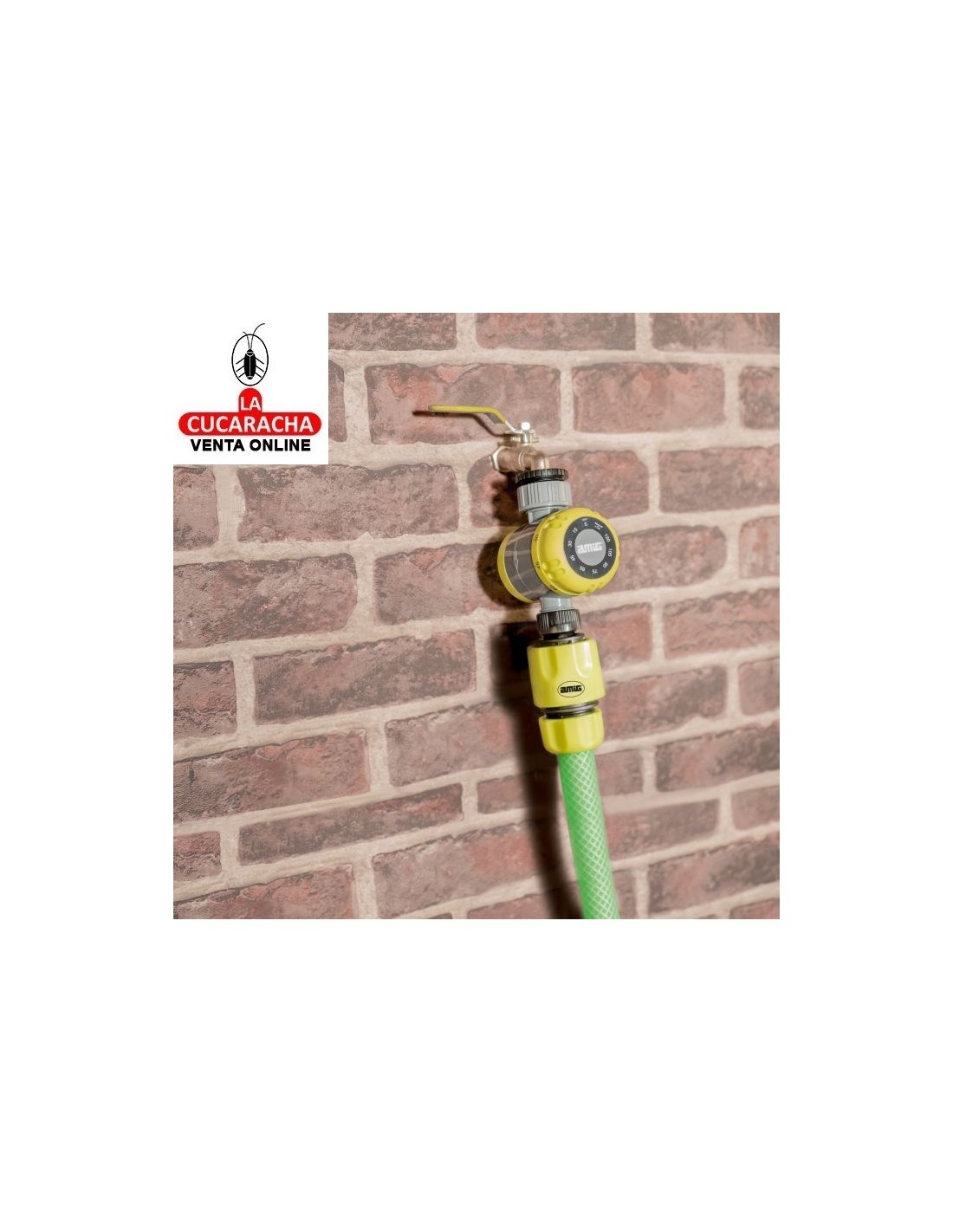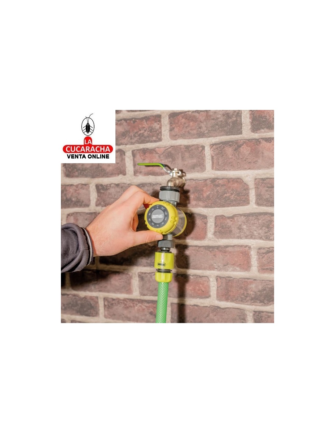 PROGRAMADOR DE RIEGO MANUAL: Es ajustable a roscas de grifo de 19 mm, lo que lo hace compatible con la mayoría de grifos estándar. Este adaptador proporciona una conexión segura y libre de fugas, lo que garantiza un riego eficiente y sin desperdicio de agua. USOS Y RECOMENDACIONES: Cuenta con un filtro de alta calidad que protege la manguera ante suciedad y sedimentos, prolongando su vida útil y ayudando a mantener el sistema de riego libre de obstrucciones para una distribución uniforme del agua en el jardín. INFORMACIÓN TÉCNICA: Las medidas del programador de riego son: diámetro de 60 mm y longitud de 80 mm. Además, ha sido elaborado con plástico ABS y goma, resistente a los cambios del clima, como la lluvia y el calor, y al roce debido a su uso continuado. ENVASE Y CARACTERISTICAS: Este artículo viene en un envase unitario. Es muy sencillo de colocar y tan sólo se necesitan un adaptador y un empalme para ponerlo en marcha. Tiene un tiempo de riego de hasta 2 horas.