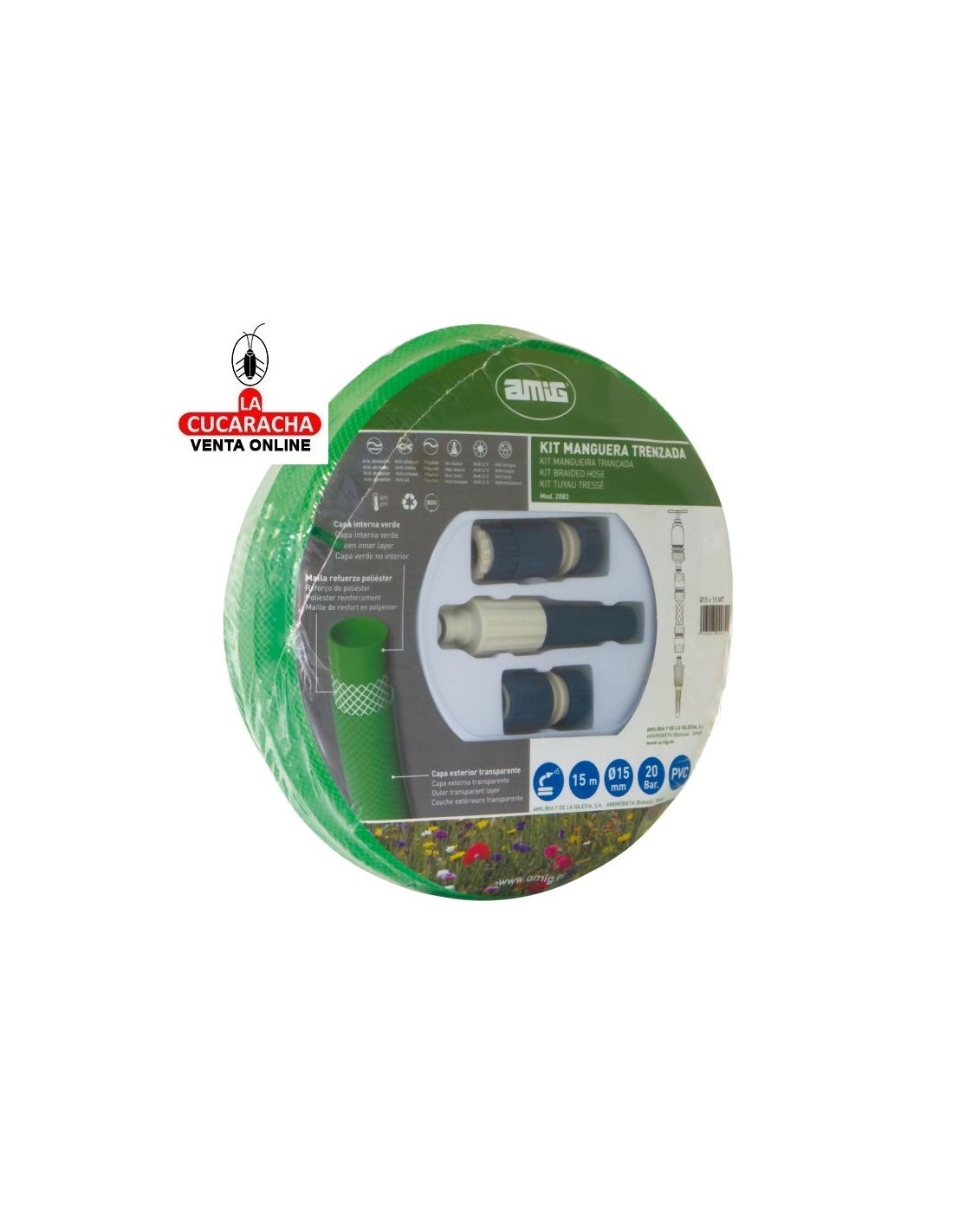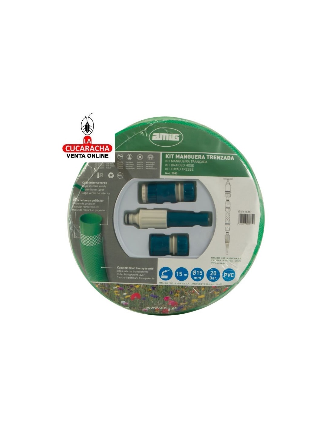 KIT MANGUERA TRENZADA FLEXIBLE DE PVC 15MMX15M MODELO 2083.